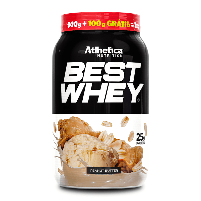 <p>O <strong>Best Whey 25G Protein Penaut Butter Atlhetica</strong>, é um blend dos melhores tipos de Whey disponíveis hoje no mercado. Uma mistura perfeita de whey protein concentrado, isolado e hidrolisado, esse whey tem tudo o que você precisa para perfeita recuperação muscular, se você busca acelerar seus resultados e ganhar massa magra.</p> <p>Devido às suas propriedades e valor nutricional, também é excelente escolha se você está em uma dieta mais rígida e precisa de um Whey baixo em gordura e carboidratos, que fornece alta dose de proteína por dose.</p> <p>Best Whey pode ser utilizado no pós-treino como alimento imediato aos seus músculos e em qualquer outro momento do dia para adicionar mais proteína a sua dieta, além de fornecer um quadro completo de aminoácidos.</p> <p>A mistura das três proteínas fornece velocidades de absorção diferentes, que vão suprir seu corpo mais rapidamente e de maneira mais eficaz.</p> <p>Além de tudo isso, Best Whey tem sabor delicioso e é extremamente cremoso.</p> Sobre os Sobre os ingredientes: <p>Best whey blend [proteína concentrada do soro do leite (wpc), proteína isolada do soro do leite (wpi), proteína hidrolisada do soro do leite (wph)], espessante goma xantana, aromatizantes, acidulante ácido cítrico, edulcorantes artificiais sucralose e acesulfame de potássio e natural reb a (glicosídeos de esteviol) e corante artificial amarelo tartrazina. “Alérgicos: contém derivados do leite e da soja (lecitina*)</p> <p>Não contém Glúten. Contém lactose.</p> <p>Ingrediente usado no processo de instantaneização da proteína do soro do leite.</p> Sugestão de consumo: <p>40g de Best Whey + 200ml de água bebida de sua preferência.</p> Motivos para escolher o produto: <ul> <li> <p>25g de proteína por dose</p> </li> <li> <p>Auxilia no ganho de massa magra</p> </li> <li> <p>Auxilia na recuperação muscular acelerada</p> </li> <li> <p>Colabora para a perda de peso</p> </li> <li> <p>Mais definição muscular</p> </li> <li> <p>Fonte de aminoácidos</p> </li> <li> <p>Fonte de; WPC, WPI, WPH</p> </li> </ul> Sobre a marca: <p>A <strong>Atlhetica</strong>, é uma empresa no qual os produtos são desenvolvidos pela ADS Laboratório Nutricional, que produz suplementos alimentares inovadores com alta qualidade e tecnologia avançada, é considerada a maior indústria de suplementos alimentares do Brasil. Os são fabricados seguindo as normas estabelecidas pela ANVISA (Agência Nacional de Vigilância Sanitária) e pelas Boas Práticas de Fabricação (BPF), proporcionando a qualidade, bem-estar e a eficácia que os consumidores tanto desejam.</p>