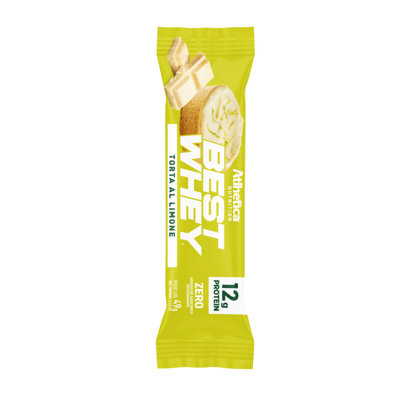 <p>A barra de proteína Best Whey Bar, sabor torta al limone, da Atlhetica Nutrition é elaborada com um blend de whey protein concentrado e isolado, que garantem uma barra com 12g de proteína, macia e saborosa.</p> <h2><strong>Sobre os ingredientes:</strong></h2> <p>Whey protein concentrado (WPC): suplemento alimentar proteico extraído do soro do leite por processo de filtragem. A proteína atua no organismo na manutenção, reparo e aumento da massa muscular.</p> <p>Whey protein isolado (WPI): passa por um processo minucioso de filtragem, eliminando a lactose e a caseína. </p> <h2><strong>Sugestão de consumo:</strong></h2> <p>Pode ser levada à escola, trabalho ou faculdade de forma super prática, para garantir um lanche proteico a qualquer momento do dia.</p> <h2><strong>Motivos para escolher o produto:</strong></h2> <ul> <li> <p>Sem glúten;</p> </li> <li> <p>Feito com whey protein;</p> </li> <li> <p>Zero adição de açúcares;</p> </li> <li> <p>12g de proteína na unidade;</p> </li> <li> <p>Prático para consumo.</p> </li> </ul> <h2><strong>A Marca</strong></h2> <p>A Atlhetica Nutrition é referência no mercado de suplementação, a marca está há mais de 20 anos fabricando suplementos alimentares com foco em sabor, saúde, força e energia para todos os tipos de treinos. A Atlhetica conquistou reconhecimento com produtos excelentes e inovadores, fabricados de acordo com as normas, proporcionando a qualidade e a eficácia que os consumidores tanto desejam.</p> <p> </p>