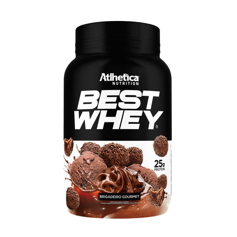 <p>A proteína Best Whey da Atlhetica Nutrition foi eleita a melhor proteína do Brasil, ela é elaborada com um blend de whey protein concentrado, isolado e hidrolisado, junto de uma fórmula sem glúten e zero adição de açúcares. Possui delicioso sabor de brigadeiro gourmet e fornece 25g de proteínas por dose.</p> <h2><strong>Sobre os ingredientes:</strong></h2> <p>Whey protein concentrado (WPC): suplemento alimentar proteico extraído do soro do leite por processo de filtragem. A proteína atua no organismo na manutenção, reparo e aumento da massa muscular.</p> <p>Whey protein isolado (WPI): passa por um processo minucioso de filtragem, eliminando a lactose e a caseína. </p> <p>Whey protein hidrolisado (WPH): além de ter um processo minucioso de filtragem, essa proteína passa por um processo chamado hidrólise, onde as moléculas de proteínas são quebradas em segmentos ainda menores, chamados peptídeos, o que torna a digestão e absorção mais fácil pelo organismo. </p> <h2><strong>Sugestão de consumo:</strong></h2> <p>Em um liquidificador ou coqueteleira diluir 2 scoops (40g) em 200ml de água ou conforme orientação do médico ou nutricionista.</p> <h2><strong>Motivos para escolher o produto:</strong></h2> <ul> <li> <p>Sem glúten;</p> </li> <li> <p>Feito com 3 tipos de whey protein;</p> </li> <li> <p>Zero adição de açúcares;</p> </li> <li> <p>25g de proteína por dose;</p> </li> <li> <p>2,2g de fibras alimentares por dose;</p> </li> <li> <p>Rende cerca de 23 doses.</p> </li> </ul> <h2><strong>A Marca</strong></h2> <p>A Atlhetica Nutrition é referência no mercado de suplementação, a marca está há mais de 20 anos fabricando suplementos alimentares com foco em sabor, saúde, força e energia para todos os tipos de treinos. A Atlhetica conquistou reconhecimento com produtos excelentes e inovadores, fabricados de acordo com as normas, proporcionando a qualidade e a eficácia que os consumidores tanto desejam.</p> <p> </p>