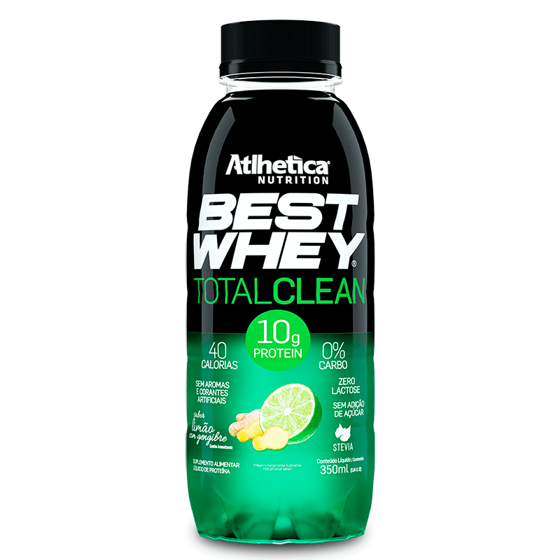 <p>O <strong>Best Whey RTD Total Clean Limão com Gengibre Atlhetica</strong>, é um suplemento alimentar com 10 gramas de proteína isolada (WPI), que possui um alto grau de pureza e com absorção mais rápida. Fornecendo a hidratação que o organismo necessita, além de manter o consumo de proteína regular.</p> <p>Tem baixa caloria, zero carboidratos, aumenta a hidratação, melhora aparência da pele, fortalece unhas, reduz rugas e celulites, isso porque os peptídeos de colágeno hidrolisado passam por processo de quebra, aumentando a absorção de colágeno pelo organismo.</p> Sobre os ingredientes: <p>Água purificada, proteína isolada do soro do leite, peptídeos de colágeno hidrolisado, citrato de sódio, água de coco, reguladores de acidez ácido cítrico e ácido fosfórico, aromatizantes naturais de água de coco e abacaxi, conservadores sorbato de potássio e benzoato de sódio, antiespumante ins 900a e edulcorante natural glicosídeos de esteviol (stevia). Não contém Glúten.</p> Alergênicos: contém derivados de leite. Motivos para escolher o produto: <ul> <li> <p>Benefícios</p> </li> <li> <p>Água purificada</p> </li> <li> <p>Whey Protein Isolado</p> </li> <li> <p>Peptídeos de Colágeno Hidrolisado</p> </li> <li> <p>Adoçante Natural</p> </li> <li> <p>Zero Açúcar</p> </li> <li> <p>Zero Lactose</p> </li> <li> <p>Zero Adoçantes</p> </li> <li> <p>Zero Corantes artificiais</p> </li> </ul> Sobre a marca: <p>A <strong>Atlhetica</strong>, é uma empresa no qual os produtos são desenvolvidos pela ADS Laboratório Nutricional, que produz suplementos alimentares inovadores com alta qualidade e tecnologia avançada, é considerada a maior indústria de suplementos alimentares do Brasil. Os são fabricados seguindo as normas estabelecidas pela ANVISA (Agência Nacional de Vigilância Sanitária) e pelas Boas Práticas de Fabricação (BPF), proporcionando a qualidade, bem-estar e a eficácia que os consumidores tanto desejam.</p>