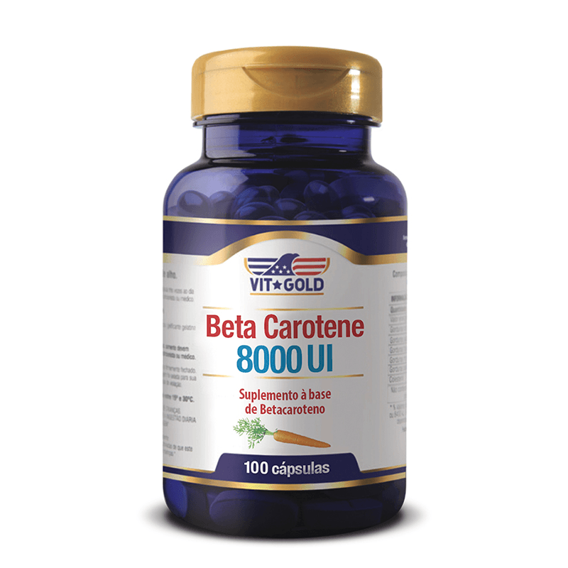 <p>O <strong>Beta Carotene 8000UI Vitgold com 100 cápsulas,</strong> é fonte de Vitamina A, auxilia na saúde da visão fortalecendo a imunidade do organismo e melhorando o processo de diferenciação celular. Colabora com a saúde das mucosas, que são camadas que recobrem alguns órgãos como nariz, garganta, boca, olhos, estômago que também atuam como barreiras de proteção contra infecções.</p> Sugestão de consumo: <p>Sugere-se 1 cápsula ao dia durante a principal refeição do indivíduo.</p> Motivos para escolher o produto: <ul> <li> <p>Auxilia no metabolismo do ferro</p> </li> <li> <p>Propicia proteção para a pele contra os efeitos do sol</p> </li> <li> <p>Auxilia na manutenção e saúde da pele</p> </li> <li> <p>Pode participar da produção de melanina</p> </li> <li> <p>Intensifica e prolonga o bronzeado</p> </li> <li> <p>Confere benefícios à saúde dos olhos</p> </li> <li> <p>Ajuda na manutenção de mucosas</p> </li> </ul> Sobre a marca: <p>A <strong>VitGold</strong>‚ é uma empresa de suplementos vitamínicos e minerais dos Estados Unidos, com atividades no Brasil desde 1994. Seus produtos são produzidos em laboratórios credenciados e validados por órgãos como a FDA nos Estados Unidos e a ANVISA no Brasil, garantindo a qualidade dos suplementos.</p>