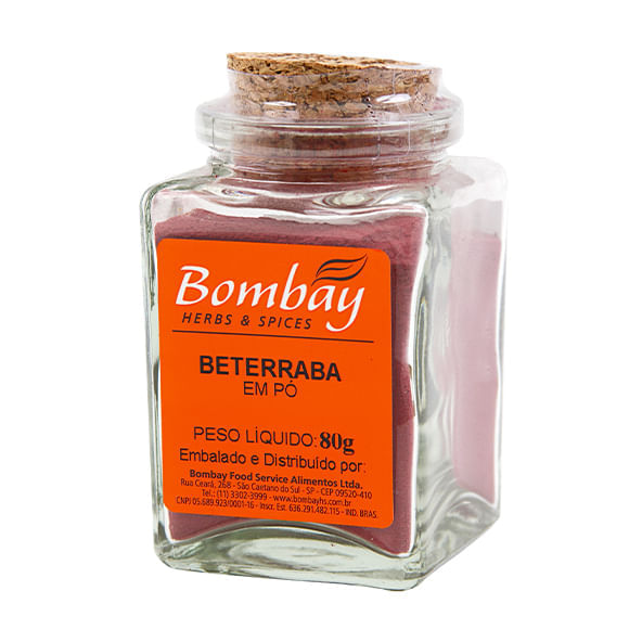 <p>Informações técnicas sobre o produto:<br>A Beterraba em pó, da Bombay, 80g, é uma farinha que merece destaque pois além de ser feita por um vegetal doce, possui boa quantidade de ferro e também é um ótimo corante natural!<br><br>Recomendações de consumo:<br>Utilize a beterraba em pó em: sucos, saladas, sopas, cozidos ou como alternativa à farinha de trigo na preparação de pães, massas, biscoitos, bolos e tortas.<br><br>Por que escolher esse produto? <br>· Sem glúten<br><br>· Livre de OGM (organismos geneticamente modificados)<br><br>· Sem adição de corantes<br><br>· Pronto para uso<br><br>Sobre a marca:<br>A Bombay Herbs & Spices é reconhecida como a empresa com maior variedade neste segmento. Foi idealizada para atender a demanda de ervas, especiarias e pimentas de alta qualidade de todos os clientes apaixonados pela gastronomia. Já conta com mais de 500 produtos, 100% puros e com uma infinidade de sabores.</p>
