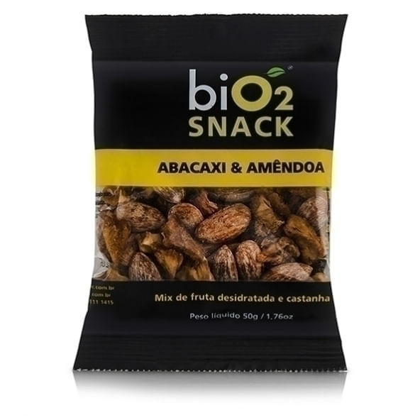 <p>O biO2 Snack Abacaxi & Amêndoa é um produto composto unicamente por abacaxi desidratado e amêndoas, sem adição de açúcar, corantes, aromatizantes, conservantes e outros aditivos alimentares que podem ser prejudiciais à saúde. Além disso, a mistura de seus ingredientes naturais e veganos, oferecem diversos nutrientes, dentre eles, vitaminas, minerais e substancias antioxidantes. Confira:<br><br>Recomendação de consumo:<br>Pode ser consumido in natura, ou adicionado à iogurtes, vitaminas, massas de bolos, tortas, entre outros.<br><br></p>