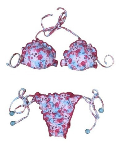 Modelo: Biquíni Ripple- Calcinha de lacinho e Top.<br /> Tecido: Supermicrofibra com proteção UV 50+ e cápsulas hidratantes de aloe vera - 90% Poliéster 10% Elastano. Secagem rápida e toque macio.<br /> Forro: Cor Branco 100% Poliamida.<br /> Bojo: Removível para lavagem ou para melhor ajuste ao corpo.<br /> Aviamentos: Cubinhos colorido de resina personalizado Sachii e Cilindro no top com tratamento anti oxidação.