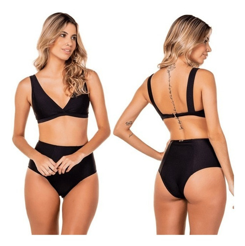 Biquíni Compress Preto.<br /> <br /> Top com bojo molinho e macio.<br /> <br /> Calcinha de cintura alta compress preto<br /> com nosso forrinho colorido especial e super confortável que não deixa entrar areia no biquíni.<br /> <br /> Tecido: Marrakesh. Composição: 86% Poliamida 14% Elastano.