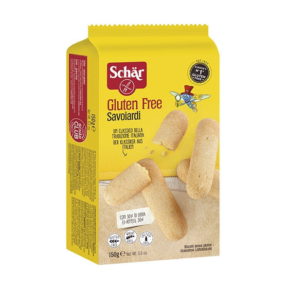 Savoiardi Biscoito Champagne, da Schär é elaborado com ingredientes livres de glúten, podendo ser consumido por pessoas com doença celíaca ou outras intolerâncias ao consumo dessa proteína. É livre de gorduras trans e conservantes artificiais.<br><br>Benefícios do Savoiardi Biscoito Champagne, da Schär:<br>Sem adoçantes artificiais<br>Sem glúten<br>Livre de corantes artificiais<br>Sem conservantes<br>Sem lactose<br>Sugestão de consumo:<br>Pode ser consumido no café da manhã, lanches ou até utilizados no preparo de sobremesas, como pavês e tortas.<br><br>AVISO: Produto frágil e sujeito a danos durante o transporte!