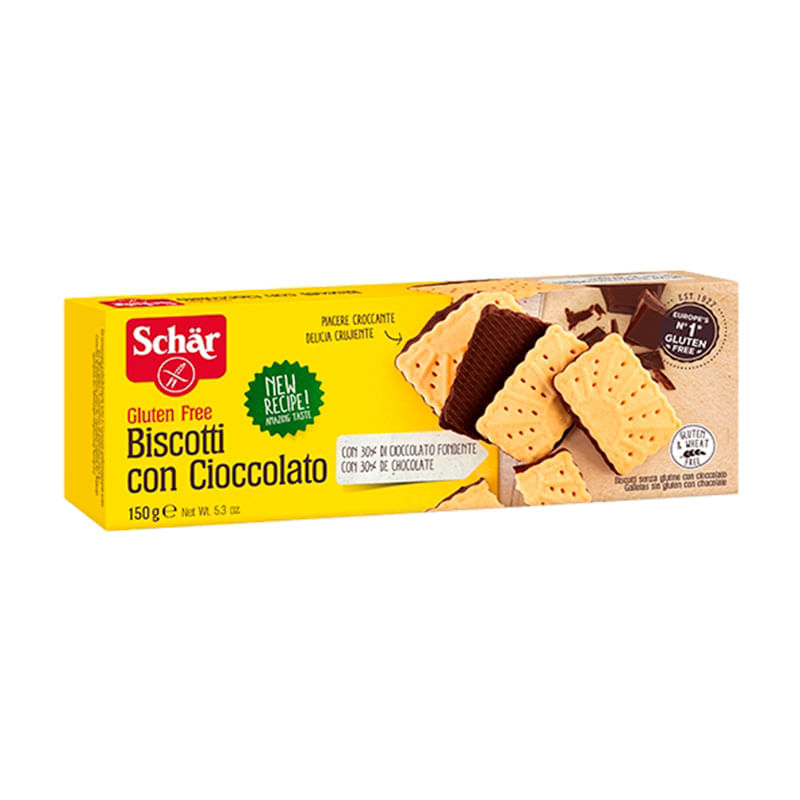 <p>Biscoito e chocolate sempre foi uma combinação que agrada a todos! Por isso, foi criado Biscotti Con Cioccolato da Schär, um biscoito sem glúten coberto com chocolate amargo. Ideal para os lanches ou para qualquer momento em que precisamos de algo saboroso. <br><br>A Schär criou mais um excelente alimento sem glúten feita com chocolate. E ainda, não contém corantes, conservantes e gorduras hidrogenadas (gordura trans).<br><br>AVISO: Produto frágil e sujeito a danos durante o transporte!</p>