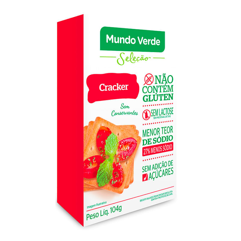 <p>O <strong>Biscoito Cracker Tradicional Mundo Verde Seleção 104g</strong>, é um biscoito salgado elaborado sem adição de glúten, com menor teor de sódio, isento de leite e açúcares. Dentro do pacote maior contém packs individuais para facilitar na hora de consumir ou levar na bolsa.</p> Sugestão de consumo: <p>Ótima opção para o café da manhã e lanches intermediários, acompanhando geleias, chás e café.</p> Motivos para escolher o produto: <ul> <li> <p>27% menos sódio</p> </li> <li> <p>Sem conservantes</p> </li> <li> <p>Sem açúcar</p> </li> <li> <p>Sem glúten</p> </li> <li> <p>Sem gorduras trans</p> </li> <li> <p>Vegetariano</p> </li> <li> <p>Vegano</p> </li> <li> <p>Sem lactose</p> </li> </ul> Sobre a marca: <p>A <strong>Mundo Verde Seleção </strong>é uma linha de produtos para quem quer ter uma vida mais saudável e gostosa. A marca quer ajudar a colocar essas escolhas em prática. A paixão e conhecimento pelos alimentos, nutrientes, aromas e sabores permitem a seleção das melhores opções saudáveis para qualquer ocasião. Conheça a linha completa Mundo Verde Seleção, com inúmeros produtos saudáveis e gostosos para facilitar seu dia a dia.</p>