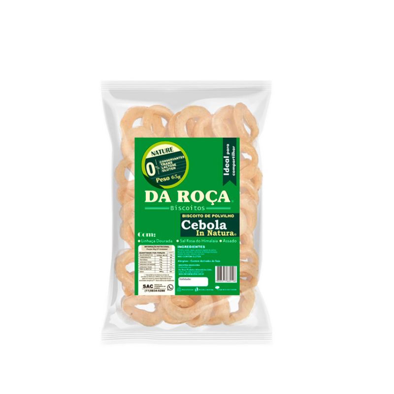 <p dir="ltr">O <strong>Biscoito de polvilho</strong> da marca <strong>Da Roça</strong>, sabor cebola, possui como base ingredientes naturais, como semente de linhaça dourada, cebola, e sal rosa do himalaia, não contém glúten e nem lactose. Perfeito para quem procura um snack com crocância e sabor.</p> <p> </p> <h2 dir="ltr">Sobre os ingredientes:</h2> <p dir="ltr"><strong>Alérgicos:</strong> contém derivados de soja;</p> <p dir="ltr"><strong>Linhaça dourada:</strong> rica em ômega 3 que contribui para a saúde cardiovascular e cerebral;</p> <p dir="ltr"><strong>Sal rosa do himalaia</strong>: contém minerais que contribuem para o equilíbrio eletrolítico do organismo.</p> <p> </p> <h2 dir="ltr">Sugestão de consumo:</h2> <p dir="ltr">Ideal para lanches intermediários, na escola, trabalho, academia, faculdade, ou em qualquer outro lugar.</p> <p dir="ltr"> </p> <h2 dir="ltr">Motivos para escolher o produto:</h2> <ul> <li dir="ltr"> <p dir="ltr">Sem glúten;</p> </li> <li dir="ltr"> <p dir="ltr">Sem lactose;</p> </li> <li dir="ltr"> <p dir="ltr">É assado;</p> </li> <li dir="ltr"> <p dir="ltr">Não contém aroma artificial;</p> </li> <li dir="ltr"> <p dir="ltr">À base de Ingredientes naturais;</p> </li> <li dir="ltr"> <p dir="ltr">Opção para veganos e vegetarianos.</p> </li> </ul> <p> </p> <h2 dir="ltr">A Marca</h2> <p dir="ltr">Há 29 anos no mercado, a empresa <strong>Da Roça</strong> tem como foco a inovação e atualização dos seus produtos e da marca. Possuem como base a produção de biscoitos de polvilhos únicos, com sabores diferenciados que conquistam os consumidores.</p> <p dir="ltr">Atualmente possuem duas linhas de produtos, a Nature e a Vegan, que estão em crescente pelo Brasil e exterior. </p>