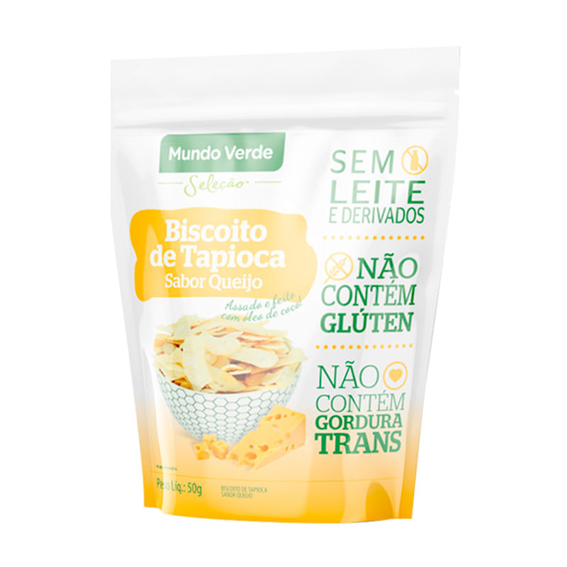 <p>O <strong>Biscoito de Tapioca</strong> sabor <strong>queijo</strong>, da <strong>Mundo Verde Seleção </strong>é um snack assado, elaborado com apenas 5 ingredientes: massa de tapioca, ovos, óleo de coco, água mineral e aromatizante natural de queijo. Uma combinação de ingredientes que deixa o produto ainda mais saudável e saboroso. Além disso, Não contém Glúten, leite e derivados.</p> Sugestão de consumo: <p>Pode ser consumido entre as refeições, opção ideal para lanche pode ser levado para qualquer lugar e consumido a qualquer hora! Uma pausa saudável para o seu dia a dia.</p> Motivos para escolher o produto: <ul> <li> <p>Feito com tapioca</p> </li> <li> <p>Assado</p> </li> <li> <p>Com óleo de coco</p> </li> <li> <p>Sem leite</p> </li> <li> <p>Sem glúten</p> </li> <li> <p>Sem gordura trans</p> </li> </ul> Sobre a marca: <p>A <strong>Mundo Verde Seleção </strong>é uma linha de produtos para quem quer ter uma vida mais saudável e gostosa. A marca quer ajudar a colocar essas escolhas em prática. A paixão e conhecimento pelos alimentos, nutrientes, aromas e sabores permitem a seleção das melhores opções saudáveis para qualquer ocasião. Conheça a linha completa Mundo Verde Seleção, com inúmeros produtos saudáveis e gostosos para facilitar seu dia a dia.</p>