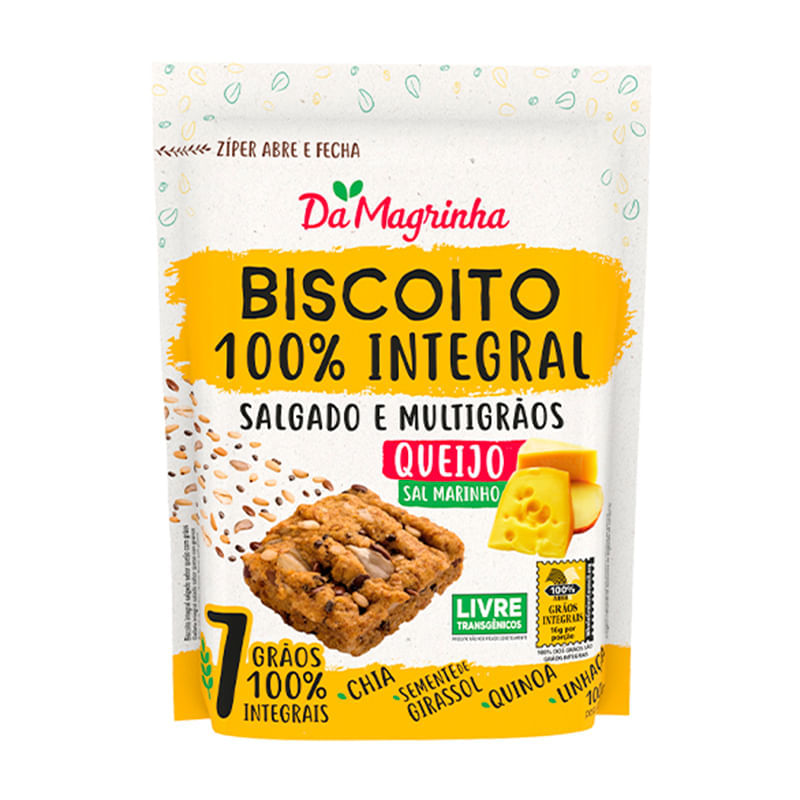<p>Informações técnicas sobre o produto:<br>O biscoito salgado sabor queijo, Da Magrinha, são deliciosos e 100% integrais, isso é, são integrais de verdade!<br><br>Seus ingredientes incluem farinha de arroz, aveia, semente de girassol, chia, quinoa e linhaça, que além do sabor delicioso e irresistível, são incríveis fontes de fibras e nutrientes para o seu dia!<br><br>Sobre os ingredientes:<br>Conheça um pouco sobre alguns ingredientes dos cookies.<br><br>Aveia: é um cereal com quantidades relevantes de fibras solúveis e insolúveis, e podemos destacar entre os minerais o zinco e manganês<br>Farinha de arroz: auxilia no controle dos níveis de colesterol, promove saciedade, evita prisão de ventre e ainda regula os níveis de glicose no sangue<br>Quinoa: importante fonte de proteínas, e muito rica em magnésio, fósforo, folato e manganês. Ainda possui antioxidantes que atuam contra o envelhecimento precoce.<br>Recomendações de consumo:<br>Uma ótima opção de lanche prático ao longo do dia. Pode, ainda, ser consumido antes ou depois da atividade física, conforme orientação do médico ou nutricionista.<br><br>Por que escolher esse produto?<br>Rico em fibras<br>Rico em vitaminas e minerais, sendo muito nutritivo<br>Prático para levar com você em seu dia a dia<br>100% integral<br>Sobre a marca:<br>A Da Magrinha é a 1ª marca do Brasil com tudo 100% integral. Tudo 100% assado, com Certificado Internacional Whole Grain, livre de transgênicos, 7 grãos nobres, embalagens em stand up pouch com zíper que abre e fecha, e com 40% de redução de plásticos. Produtos artesanais, saudáveis, gostosos e integral de verdade!</p>