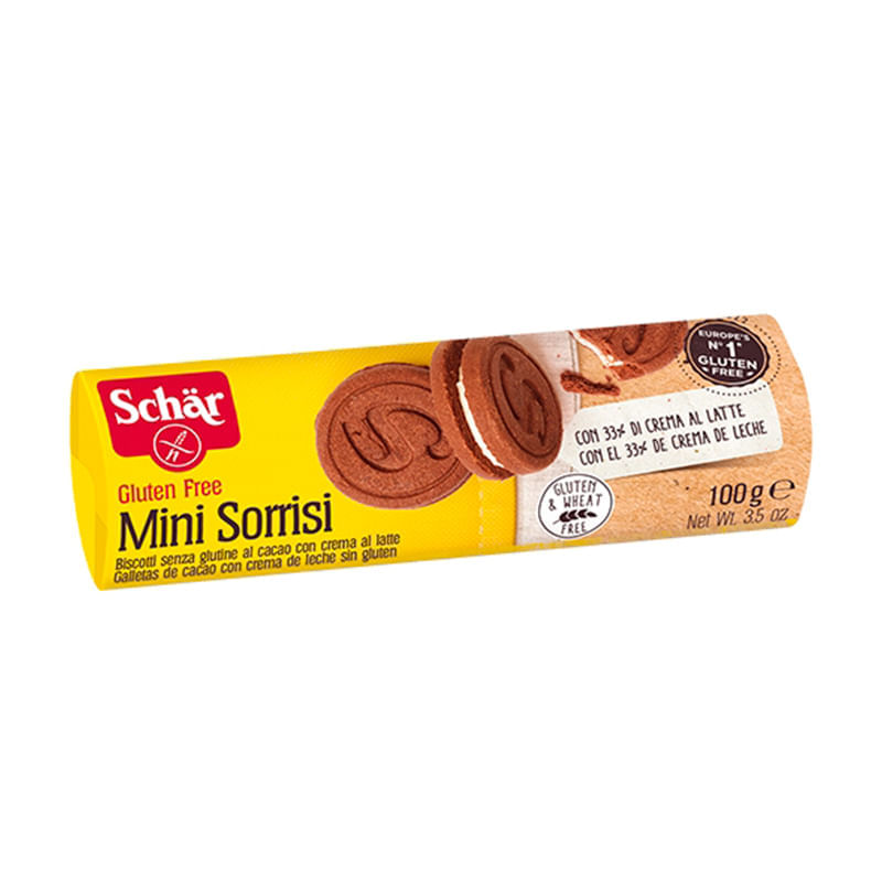 <p>Informações técnicas do produto: <br>Mini Sorrisi da Schär é uma bolacha recheada sem glúten. É indicado para celíacos ou qualquer um que siga uma dieta sem glúten. <br>Glúten uma proteína encontrada no trigo, aveia**, centeio, cevada e no malte, que causa atrofia total ou parcial da mucosa do intestino delgado. Provoca diarreia, constipação, distensão abdominal e má absorção dos nutrientes. Pessoas com doença celíaca ou intolerancia permanente ao glúten, não podem consumir esses cereais.<br>**Aveia por contaminação. <br>Pensando nisso, a Schär criou Mini Sorrisi, uma excelente opção sem glúten, elaborada com cacau e recheio de creme à base de leite. Não contém corantes, conservantes e gorduras hidrogenadas (gordura trans), sendo uma alternativa mais saudável que as demais bolachas recheadas tradicionais. Lembrando que a gordura trans está relacionada com o aumento do colesterol ‘’ruim’’, e por isso, deve ser evitada em nossa alimentação.<br><br>AVISO: Produto frágil e sujeito a danos durante o transporte!</p>