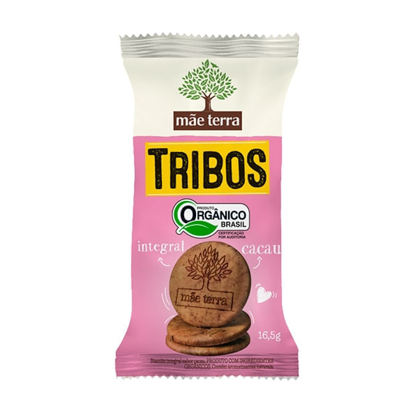 <p>Informações técnicas sobre o produto:<br>O Tribos Cacau, da Mãe Terra, 16,5g, é um delicioso snack preparado com 7 grãos integrais, além de chia, quinoa e linhaça. Feito com ingredientes orgânicos, ou seja, cultivados sem fertilizantes e outros agrotóxicos. Um biscoito crocante e delicioso, fonte de selênio e fibras, alternativa às versões tradicionais.<br><br>Recomendações de consumo:<br>Pode ser consumido a qualquer momento do dia, como um lanche saudável ou café da manhã.<br><br>Informações sobre alergênicos:<br>Contém aveia e seus derivados e derivados do trigo e da soja. Pode conter cevada e seus derivados, leite e seus derivados, castanhas (caju, Pará, amêndoas, avelã) e centeio.<br><br>Por que escolher esse produto?<br>Com cacau de pequenos produtores<br>Sem gorduras trans<br>Com ingredientes integrais<br>Fonte de fibras<br>Sem açúcar refinado<br>Com certificação orgânica<br>Sobre a marca: <br>A Mãe Terra acredita que uma alimentação saudável, é composta por alimentos mais naturais e integrais, por isso os produtos são feitos com ingredientes que fazem bem para o corpo, não tendo adição de ingredientes artificiais. Atualmente é líder no segmento de alimentos naturais e orgânicos no Brasil.</p>