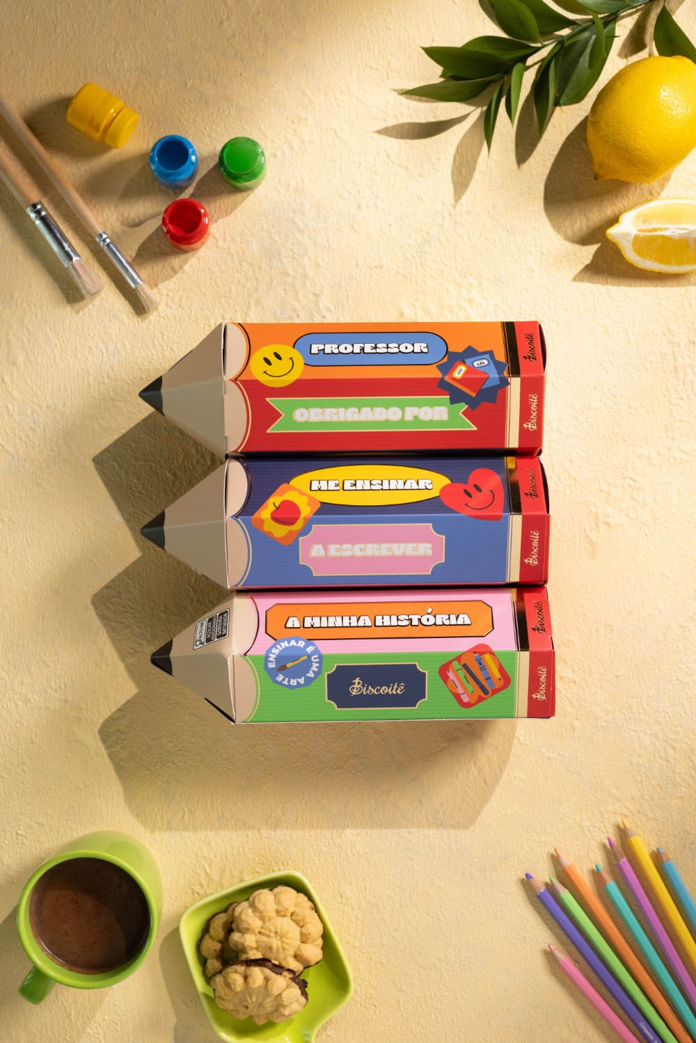 Apresentamos o Biscolápis, uma embalagem encantadora em formato de lápis que guarda nosso incrível Limonê de 220g. Este delicioso biscoito de fubá com limão siciliano é a homenagem perfeita para os mestres que iluminam mentes com sabedoria e dedicação. Celebre o Dia dos Professores com um presente que combina sabor único e uma embalagem que é pura inspiração!