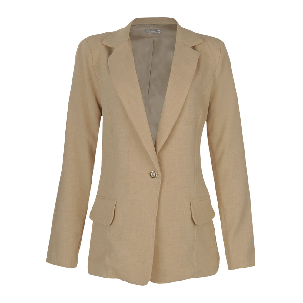 O Blazer Boyfriend Alfaiataria fechamento em botão todo trabalhado, ele consegue transformar qualquer look para um visual moderno e muito elegante, desde um office ou um visual mais casual ele fica perfeito nas suas produções, deixando um dress code mais moderno.<br>Por ter esse corte mais reto o modelo de blazer boyfrend tras esse ar de modernidade para o seu visual, ele fica perfeito com calças de alfaiataria, temos o modelo que você pode fazer de conjunto a calça pantalona alfaiataria cós elástico, com vestidos casuais até com shorts seja qual for a sua escolha você vai arrasar .<br>O Blazer surgiu por volta dos anos de 1837 e ainda fazia parte somente da vestimenta masculina, em 1930 uma estilista muito famoso que já transformou outras peças masculinas para modelos femininos criou o primeiro blazer feminino,a peça começou a parecer nas telas do cinema na década de 40 e aos poucos as mulheres aderiram a moda.<br>.<br><br>Produto: Blazer Boyfriend Alfaiataria<br>Tecido: Alfaiataria Creponada <br>Forro : 100% Poliéster<br>Lapela : Forrada <br>Composição : 100% Poliéster <br>Código: BLA2203<br>Categoria: Blazer<br>Cor: Areia<br>Gênero: Feminino.<br><br><br>Marca: Vértice.<br><br><br>.<br><br><br><br>Medidas.<br><br><br>P - Busto até 90 cm l Cintura até 71 cm l Quadril até 99 Cm.<br><br><br>M - Busto até 96 cm l Cintura até 77 cm l Quadril até 102 cm.<br><br><br>G - Busto até 102 cm l Cintura 83 cm l Quadril 111 cm.<br><br><br>GG - Busto 108 cm l Cintura até 89 cm l Quadril até 117 cm.<br><br><br>EGG - Busto até 114 cm l Cintura até 95 cm l Quadril até 123 cm.<br><br>TABELA DE MEDIDAS<br><br><br>
