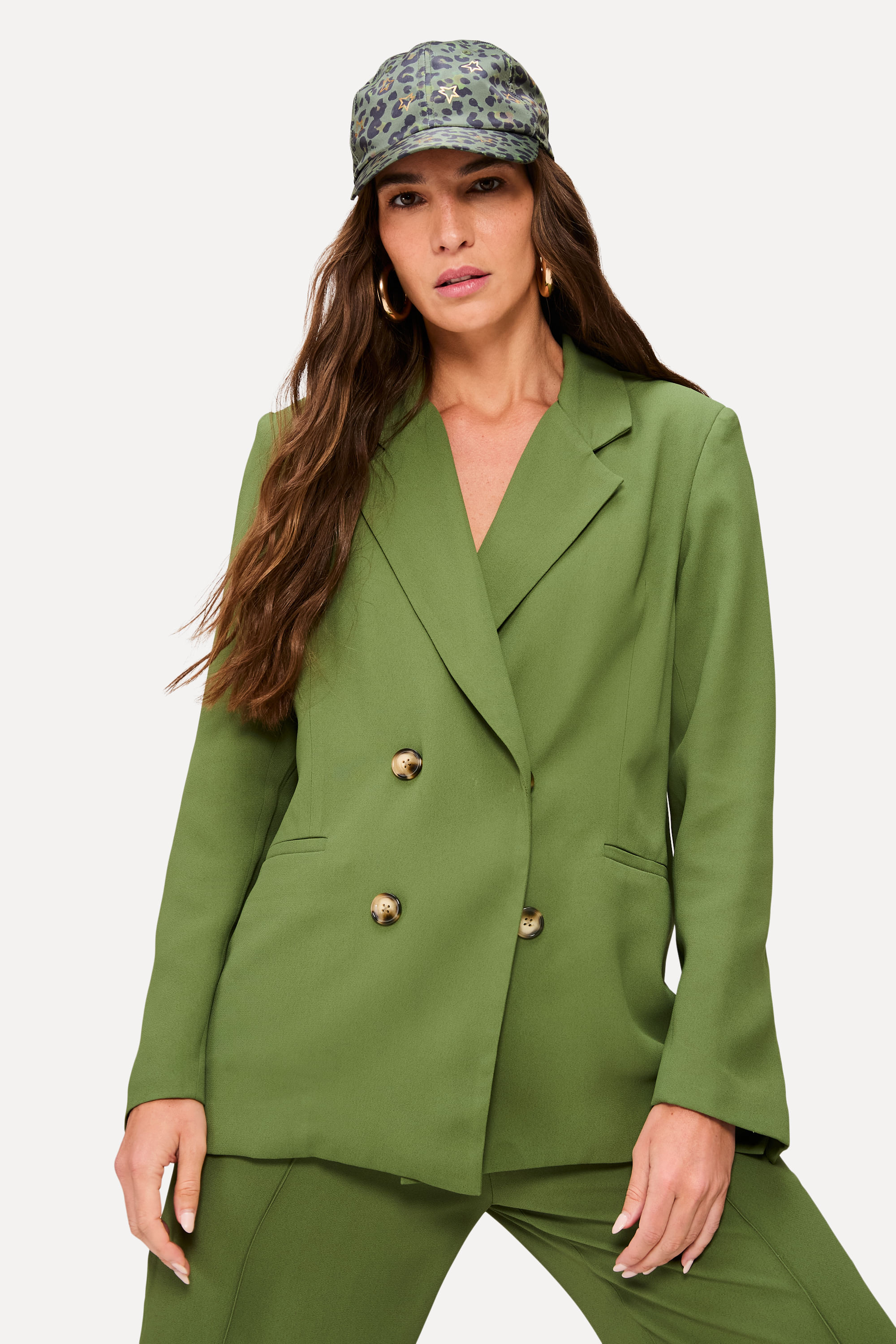 Para um dia a dia com muito mais estilo, conheça o Blazer Crepe Soul Onça, da collab Reversa + Carol Dieckmann! Feito em acetato e viscose de alta qualidade, proporciona muito conforto. Com corte de alfaiataria, deixa todo look mais elegante. Possui manga longa e fechamento frontal por botões. Combine com a Caça Crepe Soul Onça e tenha um look completo! A modelo tem 1,76 de altura, 84 de busto e veste 36. Comprando esta peça, você viabiliza cinco pratos de comida através do nosso Programa 1P5P. Blazer produzido eticamente no Brasil.
