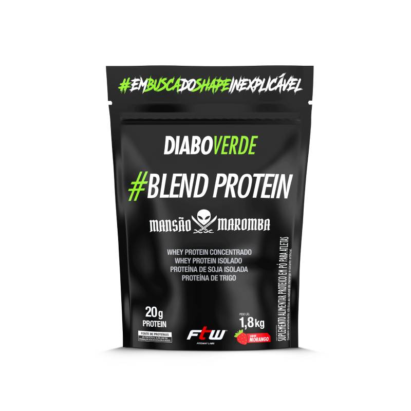 <p><strong>BLEND PROTEIN MANSÃO MAROMBA MORANGO REFIL DIABO VERDE 1,8KG</strong></p> <p>O <strong>Blend Protein Mansão Maromba sabor morango Diabo Verde</strong> é um suplemento proteico formulado com uma combinação estratégica de proteínas: concentrada e isolada do soro do leite, isolada da soja e do trigo. Essa variedade de fontes garante um perfil completo de aminoácidos e diferentes velocidades de absorção. Cada porção fornece 20 g de proteína, com excelente solubilidade, em parceria com a Mansão Maromba.</p> <p><strong>Sugestão de consumo: </strong></p> <p>Recomenda-se diluir 1 medida dosadora (30 g) em 1 copo (200 ml) de água gelada e consumir após a atividade física, em lanches intermediários ou conforme recomendação do nutricionista ou médico.</p> <p><strong>Motivos para escolher o produto: </strong></p> <p style="padding-left: 40px;">Blend de proteínas;<br>20 g de proteína por porção;<br>Mais cremosidade;<br>Sem adição de açúcar.</p> <p><strong>A marca:</strong></p> <p>A <strong>FTW </strong>nasceu do espírito For The Win, com a missão de oferecer suplementos de alta qualidade para quem leva o esporte a sério. Mais do que atender às demandas do desempenho físico, a marca inspira atletas de todos os níveis a superarem seus próprios limites, com produtos desenvolvidos para potencializar resultados. Com uma linha completa e rigorosamente testada, a FTW está presente na rotina de quem busca evolução constante. Cada fórmula carrega o compromisso com a performance, a saúde e a superação.</p>