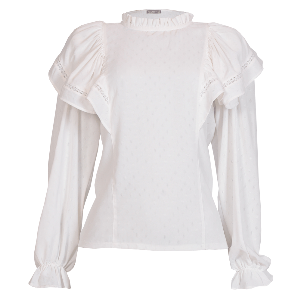 A Blusa babado manga com babado nos ombros manga longa tecido confortável e leve , pra você que quer uma peça cheia de estilo com muito conforto ela é perfeita;A Blusa babado manga é uma peça muito versátil ,caso queira fazer conjunto temos a calça pantacourt fluida que dá um Up na sua produção ,ela pode ser usada tanto em um office look como em looks mais despojados ,para o trabalho use peças com a cintura alta ,como saias e calças de alfaiataria que deixam o visual mais formal mas sem deixar de ser moderno ,abuse dos sapatos de salto do bico fino e mules para deixar seu look mais elegante ,já para um visual mais casual ela fica perfeita com jeans como ambas são peças mais básicas invista nos acessórios como mais colar brincos ,se optar por um modelo mais reto pode usar com tênis ,saia os modelos Midi com tecidos leves e soltos trazem delicadeza a combinação ,caso queira um ar mais divertido coloque um tênis branco seja qual for sua escolha você vai arrasar;<br>.<br>Produto : Blusa babado manga <br>Código : BLU2207OFF<br>Categoria: Blusas<br>Cor: Off White<br>Manga: Longa <br>Gola: Redonda <br>Tecido: Crepe Trabalhado<br>Composição : 100% Poliéster<br>Peso :300 g<br>Gênero: Feminino<br>Marca: Vértice<br><br>Medidas<br>P - Busto até 90 cm l Cintura até 71 cm l Quadril até 99 Cm<br>M - Busto até 96 cm l Cintura até 77 cm l Quadril até 102 cm<br>G - Busto até 102 cm l Cintura 83 cm l Quadril 111 cm<br>GG - Busto 108 cm l Cintura até 89 cm l Quadril até 117 cm<br>EGG - Busto até 114 cm l Cintura até 95 cm l Quadril até 123 cm<br><br><br><br><br><br><br><br><br><br>