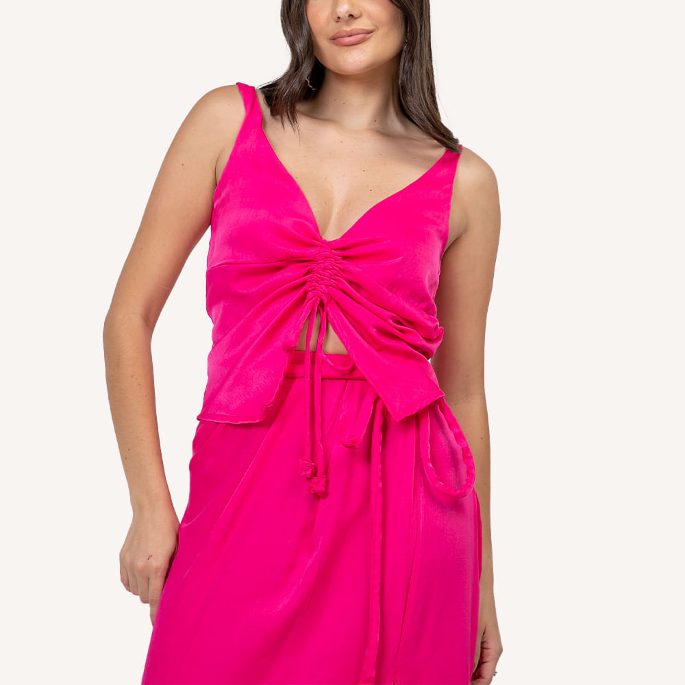 Blusa feminina confeccionada no tecido de viscose acetinada; Modelo conta modelagem borboleta com túnel frontal e cadarço do mesmo tecido para franzimento da peça e ajuste; Possui decote em V profundo e alças médias; Uma peça leve e cheia de referência de moda para inserir no seu look casual; Invista com calça jeans de cintura alta e sandálias coloridas para um visual despojado; Para um mood romântico, apostar com calças e saias fluidas é a melhor opção; A blusa com franzido borboleta é a tendência mais quente da temporada e as fashionistas estão amando incorporar a peça ao seu estilo pessoal de maneira autêntica e cheia de estilo;<br><br><br>.<br><br><br>Produto: Blusa Cetim Franzida Pink<br>Categoria: Blusas<br>Cor: Pink <br>Manga: Regata<br>Gola: Gola em V <br>Tecido: Viscose Acetinada<br>Composição : 50,6% viscose / 49,4% poliester<br>Peso :200 g<br>Gênero: Feminino<br>Marca: Vértice<br>.<br><br><br>Medidas.<br><br><br>P - Busto até 90 cm l Cintura até 71 cm l Quadril até 99 Cm.<br>M - Busto até 96 cm l Cintura até 77 cm l Quadril até 102 cm.<br>G - Busto até 102 cm l Cintura 83 cm l Quadril 111 cm.<br>GG - Busto 108 cm l Cintura até 89 cm l Quadril até 117 cm.<br>EGG - Busto até 114 cm l Cintura até 95 cm l Quadril até 123 cm.<br><br><br><br><br><br><br><br><br><br><br><br><br><br><br><br><br><br><br><br><br><br><br><br><br><br><br><br><br><br><br><br><br><br><br><br><br><br><br><br><br><br><br><br><br><br><br><br><br><br><br>
