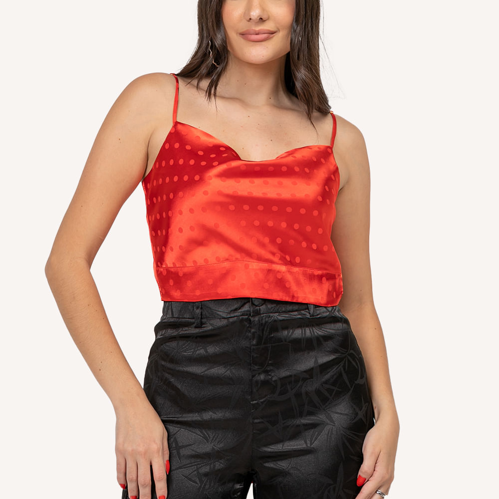 Top feminino confeccionado em tecido de viscose acetinada e cetim estampado; Modelo conta com decote levemente degagê, alças finas, barrado de comprimento médio e detalhe de laço nas costas; O top feminino com laço nas costas é a peça perfeita para você usar durante um jantar com a família ou em um passeio com as amigas; Aposte com saia midi nos mesmos tons para um visual monocromático perfeito; Arremate com sandálias e acessórios! <br>O top é a peça favorita das brasileiras antenadas na moda e o design do top feminino com detalhe de laço posterior traz ainda mais charme e autenticidade á peça, aposte!<br><br><br>.<br><br><br>Produto: Blusa Cetim Laço Vermelho<br>Categoria: Cropped<br>Cor: Vermelo <br>Manga : Regata<br>Tecido: Cetim estampado<br>Composição: 97% poliester / 3% elastano<br>Peso :300 g<br>Gênero: Feminino<br>Marca: Vértice<br><br>.<br><br><br>Medidas<br>P - Busto até 90 cm l Cintura até 71 cm l Quadril até 99 Cm.<br>M - Busto até 96 cm l Cintura até 77 cm l Quadril até 102 cm.<br>G - Busto até 102 cm l Cintura 83 cm l Quadril 111 cm.<br>GG - Busto 108 cm l Cintura até 89 cm l Quadril até 117 cm.<br>EGG - Busto até 114 cm l Cintura até 95 cm l Quadril até 123 cm.<br><br><br><br><br><br><br><br><br><br><br><br><br><br><br><br><br><br><br><br><br><br><br><br><br><br><br><br><br><br><br><br><br><br><br><br><br><br><br><br><br><br><br><br><br><br><br><br><br><br>