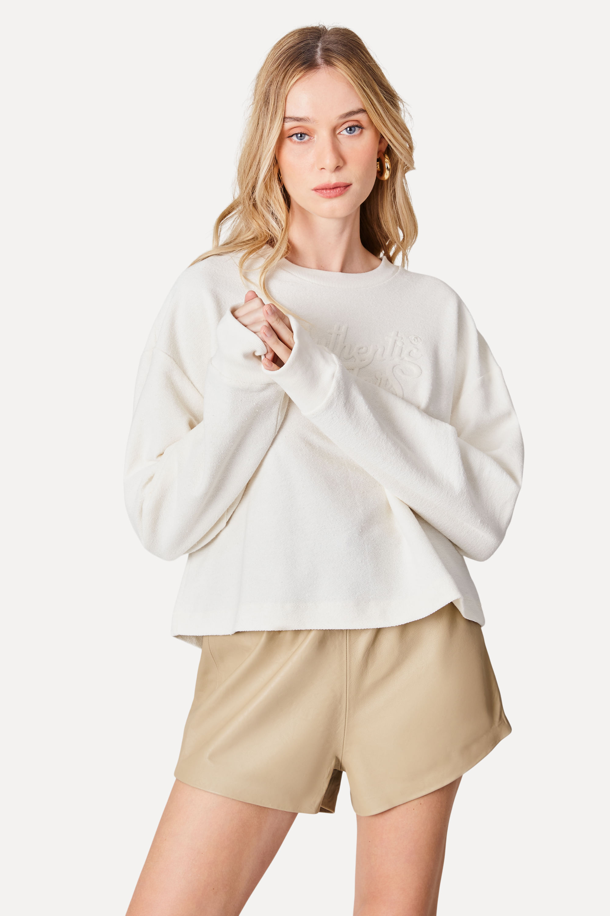 Descubra o charme discreto e a elegância atemporal da Blusa Moletom Authentic. Em manga longa e gola redonda careca, essa peça off-white traz a frase “Authentic Sailors” (Marinheiros Autênticos, em português), na mesma cor. Combine com calças, shorts ou saias, sandálias ou tênis e arrase em um dia de trabalho ou uma saída mais descontraída! A modelo tem 1,76 de altura, 85 de busto e veste 36. Comprando esta peça, você viabiliza cinco pratos de comida através do nosso Programa 1P5P. Blusa produzida eticamente no Brasil.