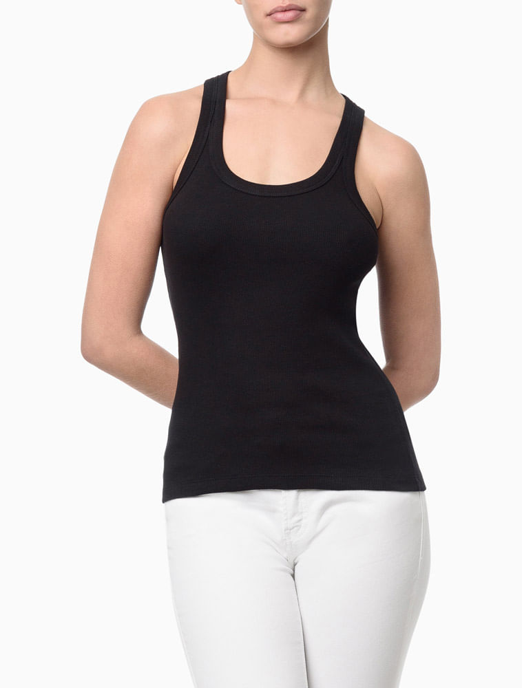 A Blusa Feminina Básica Ribana Calvin Klein Jeans é confeccionado com materiais de alta qualidade e acabamento impecável. Seu caimento ajustado ao corpo proporciona liberdade de movimento, tornando-o perfeito para combinar com saias, calças ou shorts. <br> <br> <i>CARACTERÍSTICAS</i> <hr> <br> • Sem Manga <br> • Decote "U" <br> • Logo Exclusivo da Marca nas Costas <br> • Modelagem Básica em Ribana
