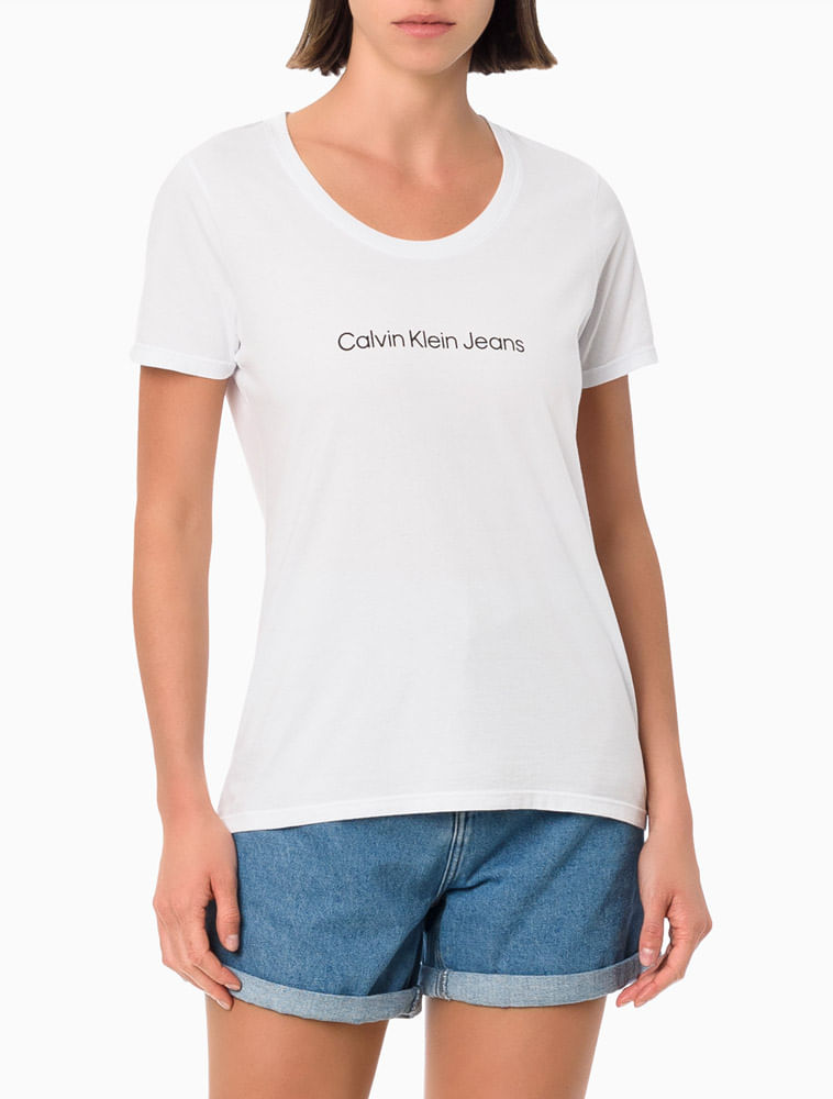 Blusa Calvin Klein Jeans Feminina, Manga Curta, Em Meia Malha Com Estampa De Logo Localizada No Centro Frente Da Peça.Modelagem Slim.