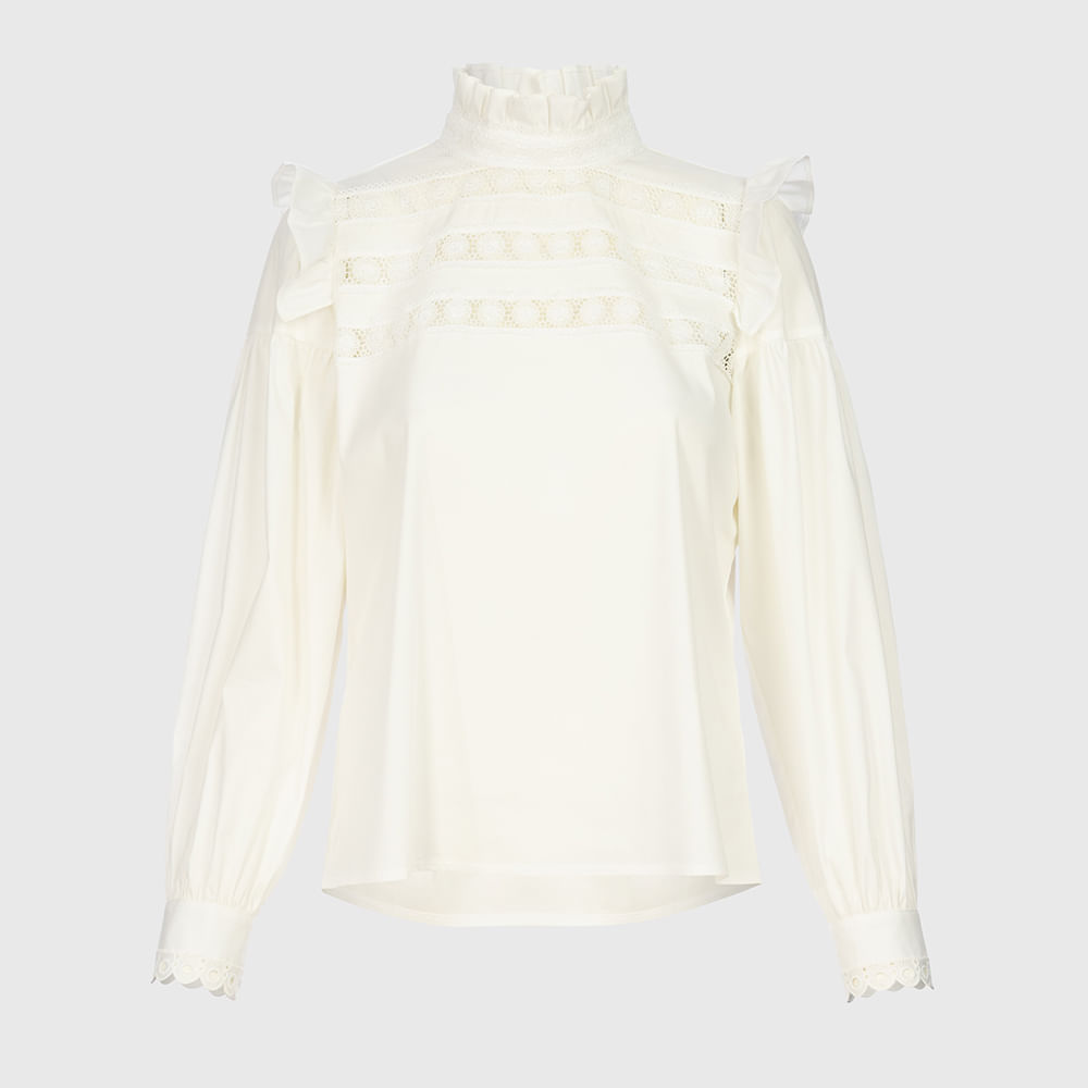 A camisa com Guipir é um tecido bem conhecido por suas características que reúnem delicadeza, feminilidade a beleza do tecido rende várias composições lindas para a moda, e algumas delas são composta com shorts, saia, calça, flare e pantalona. Camisa Branca, com aplicação em renda e guipir essa peça com certeza você deve ter no seu guarda-roupa é uma peça chave deixa o look charmoso e elegante.. Produto: Blusa Gola Alta com Detalhe em Renda. Tecido: Viscose. Código: BLU2050. Categoria: BLusas. Gênero: Feminino. Marca: Vértice.. Medidas. P - Busto até 90 cm l Cintura até 71 cm l Quadril até 99 Cm. M - Busto até 96 cm l Cintura até 77 cm l Quadril até 102 cm. G - Busto até 102 cm l Cintura 83 cm l Quadril 111 cm. GG - Busto 108 cm l Cintura até 89 cm l Quadril até 117 cm. EGG - Busto até 114 cm l Cintura até 95 cm l Quadril até 123 cm.