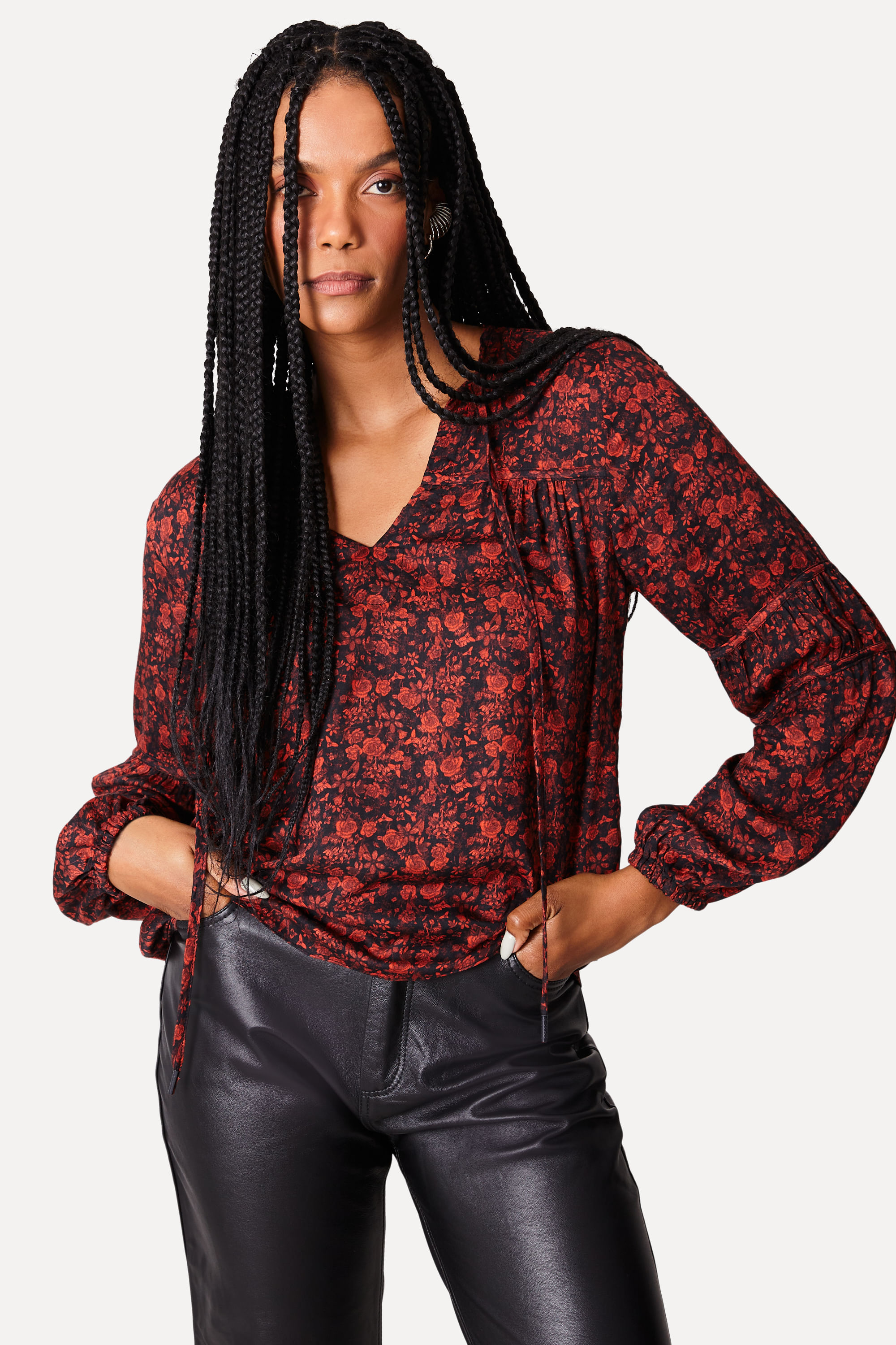 A Blusa Liberty Cherry é a peça perfeita para adicionar um toque de cor e estilo ao seu closet. Com modelagem mais solta ao corpo, possui manga longa e decote em V com detalhe amarração. Combine com as saias, calças e botas da Reversa e arrase! A modelo tem 1,77 de altura, 82 de busto e veste 36. Comprando esta peça, você viabiliza cinco pratos de comida através do nosso Programa 1P5P. T-shirt produzida eticamente no Brasil.