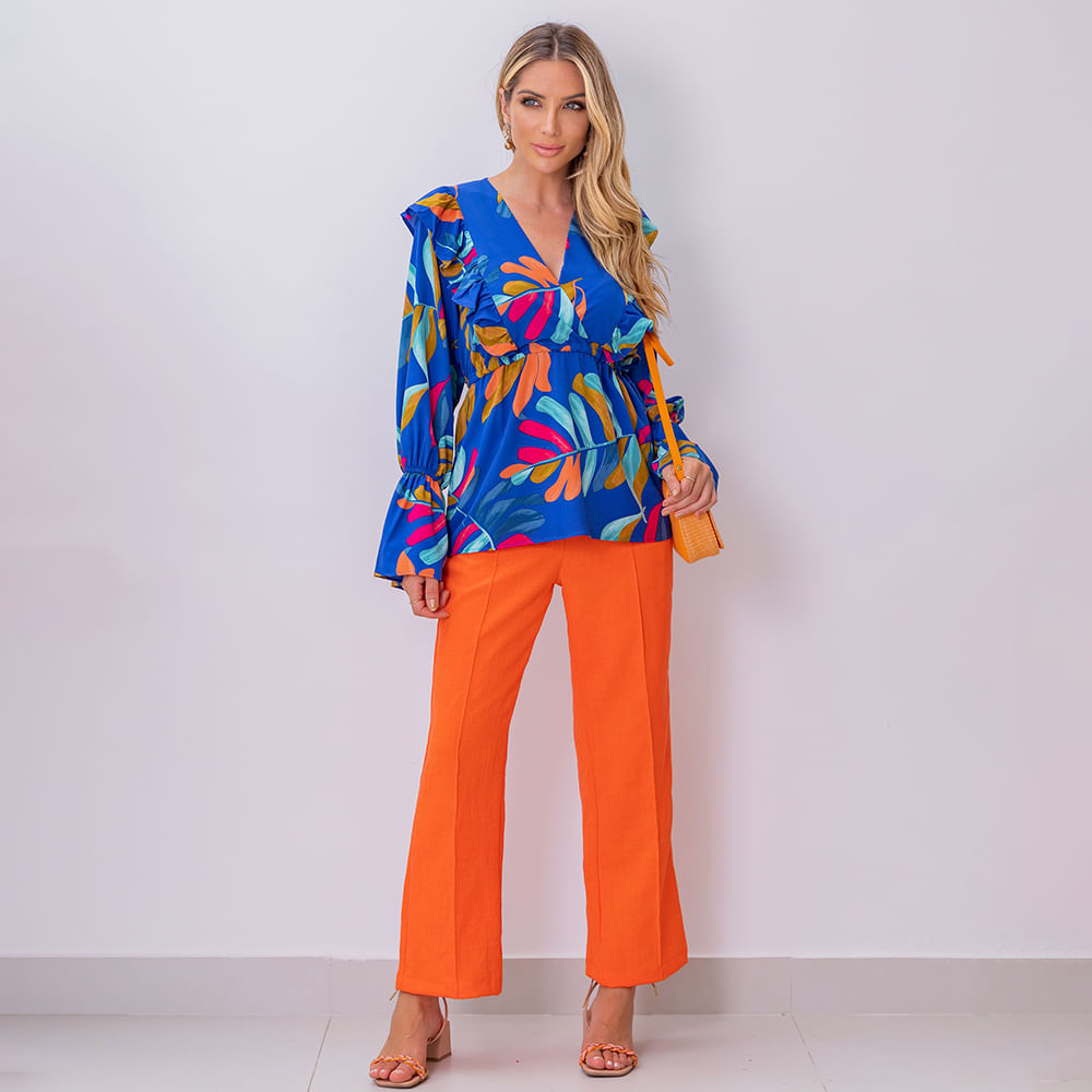 Blusa feminina manga longa confeccionada em tecido super soft estampado; Modelo conta com decote em V transpassado, mangas longas com elástico no punho e ajuste na cintura através de uma cordinha, deixando a parte inferior soltinha no corpo; A peça possui detalhe de babados frontais trazendo movimento a peça, além de uma estampa corrida em aquarela com tons leves e delicados; A blusa feminina de mangas longas tem um caimento fluido e toque macio, sendo ideal para contrapor com partes inferiores mais estruturadas ou com tecidos mais grossos; Combine sua blusa feminina aquarelada com uma calça jeans reta e mocassim off white, para o office look perfeito; A blusa estampada com mangas longas e babados é a peça ideal para quem quer unir o moderno e o romântico em uma só peça; Aposte na delicadeza da aquarela e nas ombreiras formadas pelos babados frontais para criar um visual fashionista!<br><br><br>.<br><br><br>Produto : Blusa Manga Longa Estampada Azul <br>Categoria: Blusa<br>Cor: Azul( Estampa Aquarela)<br>Tecido: Super Soft Estampado <br>Composição : 88% Poliester / 12% Elastano <br>Peso :300g<br>Gênero: Feminino<br>Marca: Vértice<br><br><br>Medidas.<br><br>P - Busto até 90 cm l Cintura até 71 cm l Quadril até 99 Cm.<br>M - Busto até 96 cm l Cintura até 77 cm l Quadril até 102 cm.<br>G - Busto até 102 cm l Cintura 83 cm l Quadril 111 cm.<br>GG - Busto 108 cm l Cintura até 89 cm l Quadril até 117 cm.<br>EGG - Busto até 114 cm l Cintura até 95 cm l Quadril até 123 cm.<br><br><br><br><br><br><br><br><br><br><br><br><br><br><br><br><br><br><br><br><br><br><br><br><br><br><br><br><br><br><br><br><br>