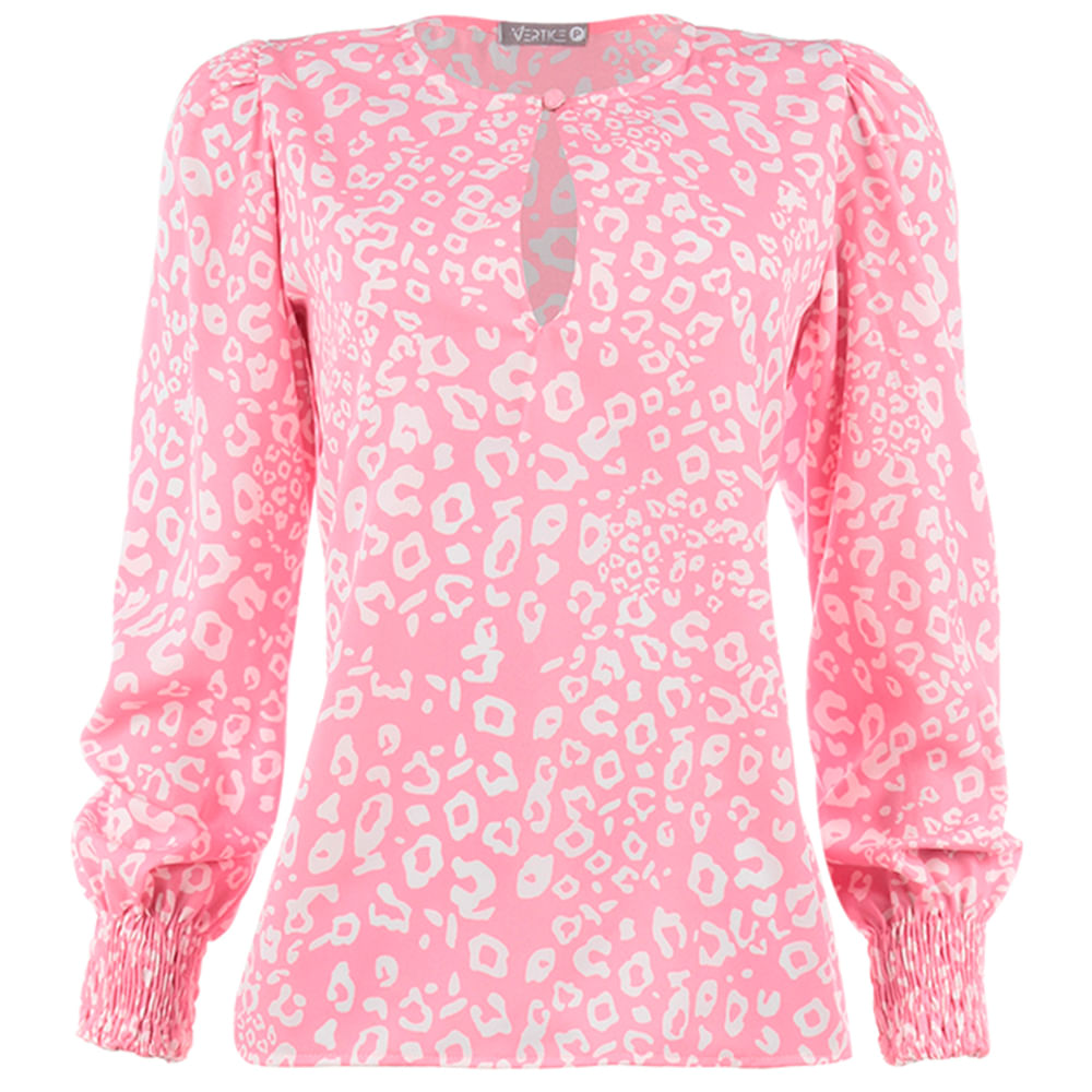Blusa feminina confeccionada em crepe Twill Luanda estampado; Modelo possui mangas longas com aplicação de lastex no punho, decote redondo e abertura frontal com detalhe de abotoamento; Estampa corrida em animal print inspirada na padronagem das onças; A blusa feminina com mangas longas e lastex é delicada e pode usar em diversas ocasiões; Para um office look divertido, aposte em calças refinadas e de tons neutros como a calça flare, a calça pantalona ou a calça reta de alfaiataria, deixando a blusa de onça em evidência; Complete o look com sandálias de salto médio colorido;O animal print é atemporal e se tornou uma das estampas mais usadas pelas fashionistas brasileiras; Ideal para montar looks clássicos ou looks autênticos e criativos, você precisa ter essa estampa curinga de onças no seu guarda-roupa;<br>.<br>Produto : Blusa Manga Longa Lastex Onça Rosa<br>Código : BLU2203ONR<br>Categoria: Blusas<br>Cor: Onça Rosa<br>Manga: Manga Longa<br>Gola: Redonda <br>Tecido: Crepe Twill Luanda Estampado<br>Composição : 89 % Poliester / 11% Elastano<br>Peso : 300 g<br>Gênero: Feminino.<br><br>Marca: Vértice<br><br>.<br><br>Medidas.<br><br><br>P - Busto até 90 cm l Cintura até 71 cm l Quadril até 99 Cm.<br><br>M - Busto até 96 cm l Cintura até 77 cm l Quadril até 102 cm.<br><br>G - Busto até 102 cm l Cintura 83 cm l Quadril 111 cm.<br><br>GG - Busto 108 cm l Cintura até 89 cm l Quadril até 117 cm.<br><br>EGG - Busto até 114 cm l Cintura até 95 cm l Quadril até 123 cm.<br>