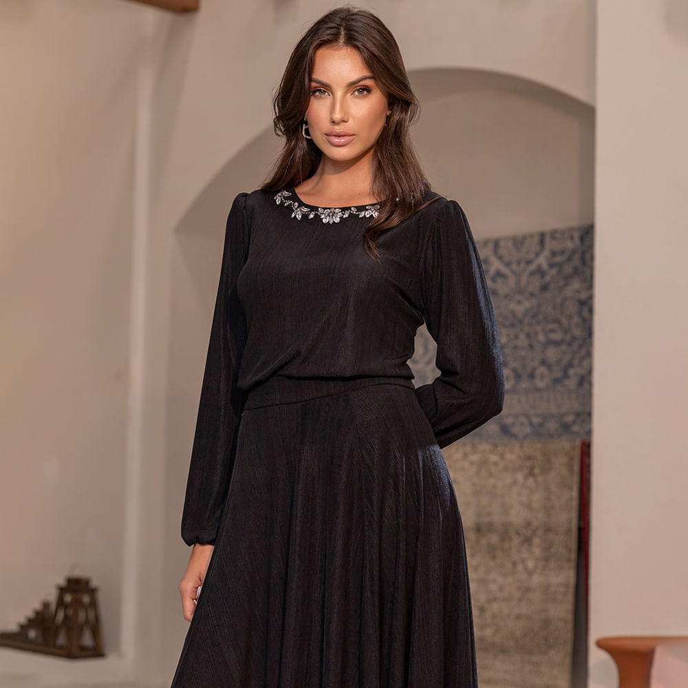A blusa plissada com brilho e bordados no decote é uma peça de destaque que combina harmoniosamente elementos de moda, oferecendo uma abordagem moderna e sofisticada ao estilo; Combinando detalhes plissados, brilho sutil e bordados delicados, essa peça cria um equilíbrio entre glamour e elegância discreta; A blusa plissada com brilho e bordados no decote é uma peça de destaque que combina harmoniosamente elementos de moda, oferecendo uma abordagem moderna e sofisticada ao estilo; Combinando detalhes plissados, brilho sutil e bordados delicados, essa peça cria um equilíbrio entre glamour e elegância discreta; Em termos de combinações de moda, essa blusa versátil pode ser combinada com saias longas esvoaçantes para um visual romântico, calças de cintura alta para uma abordagem mais formal ou até mesmo jeans para um toque casual-chique;<br>.<br><br>Produto: Blusa Plissada Brilho Bordada Decote Preto <br>Categoria: Blusa<br>Cor: Preto <br>Tecido: Poliester <br>Composição: 96% Poliester / 4% Elastano<br>Peso : 300g<br>Gênero: Feminino<br>Marca: Vértice<br><br>Medidas da Modelo<br>Altura: 1,70 cm<br>Busto: 89 cm<br>Cintura: 65 cm<br>Quadril: 94 cm<br>A MODELO VESTE O TAMANHO P<br>.<br>Medidas.<br>P - Busto até 90 cm l Cintura até 71 cm l Quadril até 99 Cm.<br>M - Busto até 96 cm l Cintura até 77 cm l Quadril até 102 cm.<br>G - Busto até 102 cm l Cintura 83 cm l Quadril 111 cm.<br>GG - Busto 108 cm l Cintura até 89 cm l Quadril até 117 cm.<br>EGG - Busto até 114 cm l Cintura até 95 cm l Quadril até 123 cm.<br>