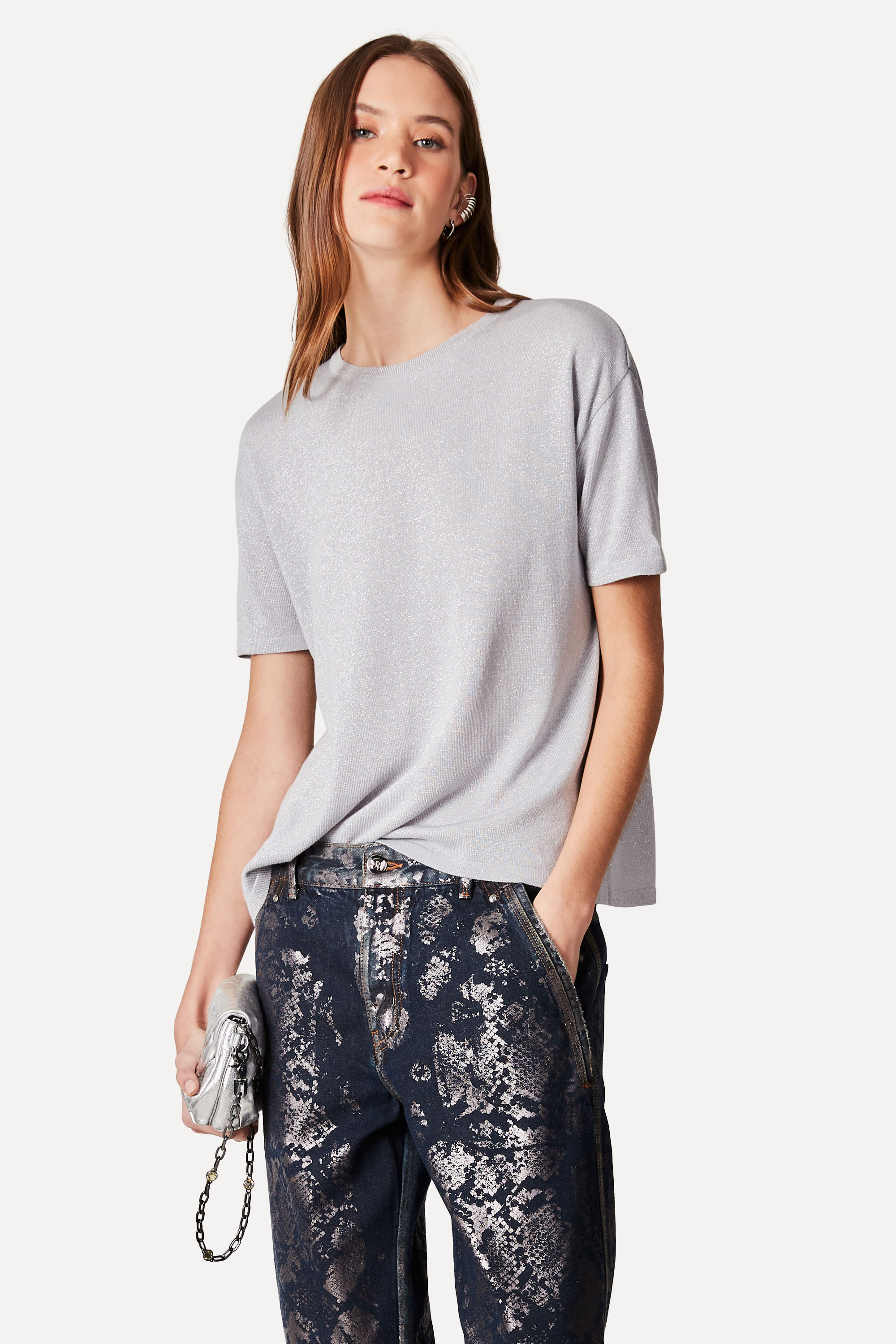 No frio ou calor, aposte na Blusa Tricot Manga Curta Lurex! Feita em algodão de alta qualidade, garante conforto o dia todo. Possui manga curta e gola redonda. Combine com calças, shorts ou saias, tênis ou chinelos para um dia de trabalho ou uma saída com as amigas. A modelo tem 1,77 de altura, 80 de busto e veste 36. Comprando esta peça, você viabiliza cinco pratos de comida através do nosso Programa 1P5P. Blusa produzida eticamente no Brasil.