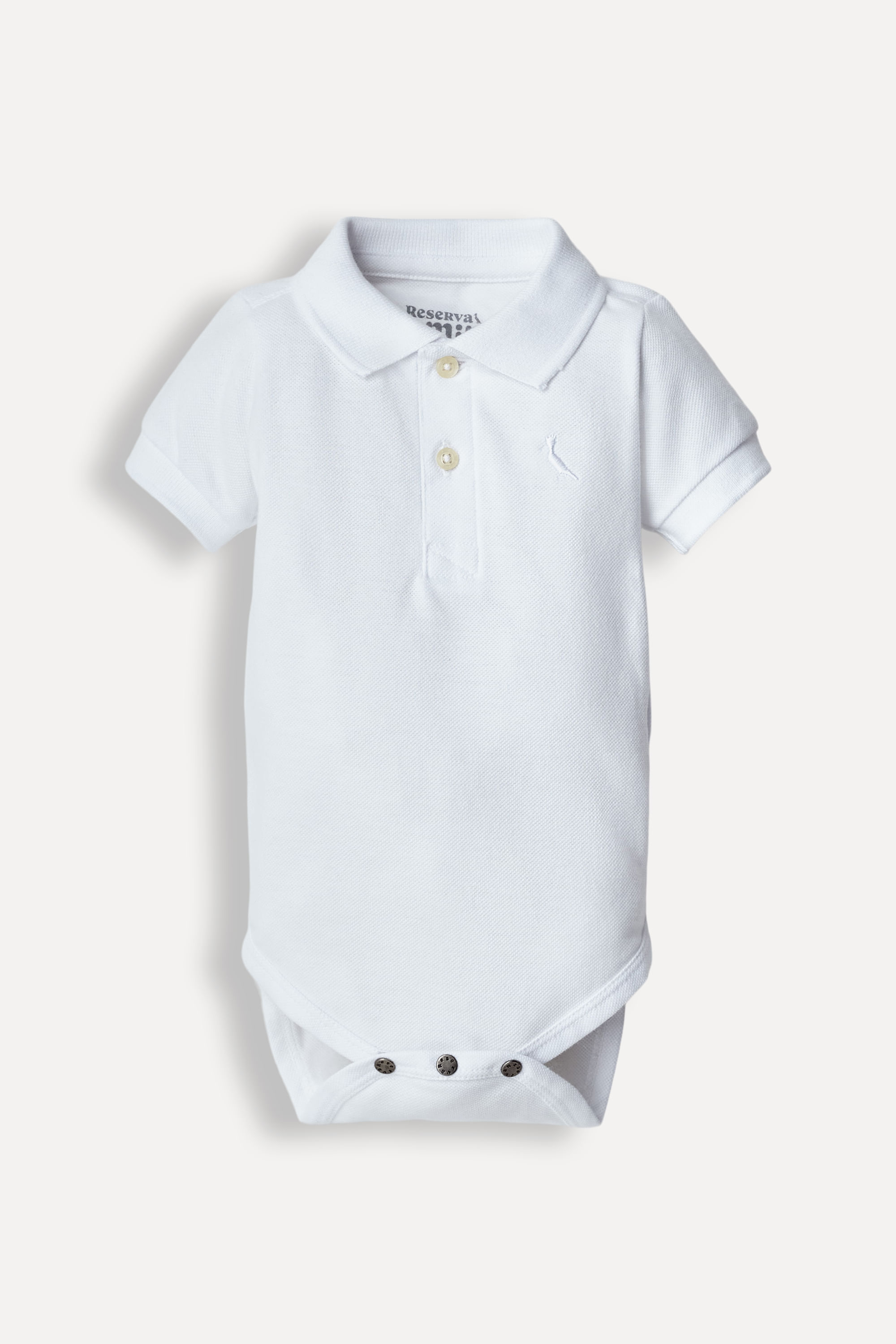 Pensou em Polo pro bebê? Vestiu o Body Polo Mc Bb Piquet Básica da Reserva! Feito em algodão de alta qualidade, garante muito conforto. Possui manga curta, peitilho com botões e botões de pressão na parte de baixo, que ajudam na hora de se vestir e trocar a fralda. Comprando esta peça, você viabiliza cinco pratos de comida através do nosso Programa 1P5P. Body produzido eticamente no Brasil.