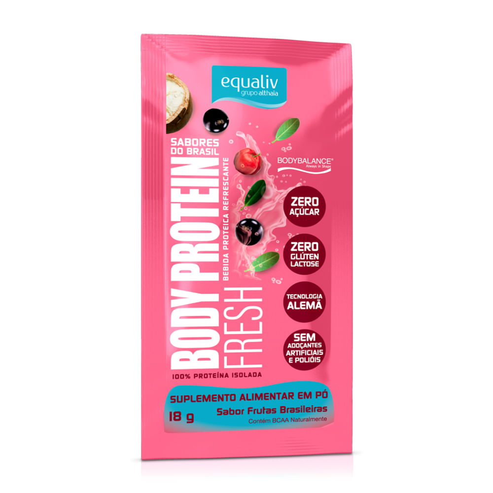 <p dir="ltr">O <strong>Body Protein Fresh sabor Sabores do Brasil Equaliv</strong> é um suplemento em sachê prático, formulado com proteína BodyBalance, de alta qualidade para auxiliar na ingestão adequada desse nutriente essencial, que contribui para a formação de músculos e ossos. Desenvolvido com ingredientes brasileiros, como cupuaçu, jabuticaba e acerola, é delicioso e ideal para o dia a dia.</p> <h2 dir="ltr">Sugestão de consumo:</h2> <p dir="ltr">Diluir 1 sachê em 100 ml de água fria, mexa até dissolver completamente. Consuma depois do exercício ou conforme orientação de médico ou nutricionista.</p> <h2 dir="ltr">Motivos para escolher o produto:</h2> <ul> <li dir="ltr" aria-level="1"> <p dir="ltr" role="presentation">Contém 14 g de proteína por sachê;</p> </li> <li dir="ltr" aria-level="1"> <p dir="ltr" role="presentation">Fonte de proteínas, que auxiliam na formação de músculos e ossos;</p> </li> <li dir="ltr" aria-level="1"> <p dir="ltr" role="presentation">Praticidade em sachê individual;</p> </li> <li dir="ltr" aria-level="1"> <p dir="ltr" role="presentation">Sabor delicioso de sabores do Brasil;</p> </li> <li dir="ltr" aria-level="1"> <p dir="ltr" role="presentation">Sem glúten e sem adição de açúcares; </p> </li> <li dir="ltr" aria-level="1"> <p dir="ltr" role="presentation">Sem adoçantes artificiais e polióis. </p> </li> </ul> <h2 dir="ltr">A Marca</h2> <p dir="ltr">A <strong>Equaliv </strong>é uma marca brasileira que une inovação, tecnologia e ciência para desenvolver suplementos alimentares de alta qualidade. Seu portfólio é pensado para atender diferentes necessidades do dia a dia, oferecendo fórmulas seguras e eficazes, elaboradas com matérias-primas selecionadas e processos que garantem pureza e confiabilidade. Com o compromisso de promover saúde, bem-estar e mais vitalidade, a Equaliv busca apoiar escolhas inteligentes e conscientes, sempre com foco na qualidade de vida.</p>