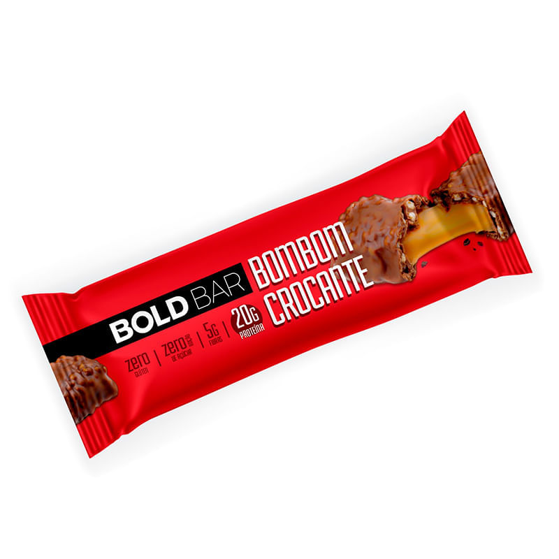 <p>A <strong>Bold bar </strong><strong>Bombom crocante</strong>, da <strong>Bold Snacks</strong>, é uma barra de proteína deliciosa e nutritiva. Cada barrinha fornece <strong>20 g de proteínas</strong> proveniente do whey protein e do colágeno hidrolisado, além de 5 g de fibras e <strong>zero adição de açúcares</strong>. Ideal para satisfazer a vontade de comer um doce com praticidade.</p> Sobre os Ingredientes: <p>Confira mais informações sobre alguns ingredientes do produto.</p> <p>· <strong>Blend proteico:</strong> composto por proteínas do leite e do soro do leite, fornecem aminoácidos essenciais, ou seja, aqueles que o nosso corpo não produz e precisamos obter por meio da dieta.</p> <p>· <strong>Colágeno hidrolisado:</strong> os aminoácidos presentes no colágeno estão presentes em diversos tecidos, tais como o da pele, ossos, cartilagens e ligamentos.</p> <p>· <strong>Frutooligossacarídeos (FOS):</strong> considerada uma fibra prebiótica.</p> Alérgicos: <p>Contém derivados de leite e soja. Contém lactose. Pode conter traços de amendoim.</p> Recomendação de consumo: <p>Consuma até 2 unidades ao dia ou conforme orientação profissional.</p> <p><strong>Dica:</strong> experimente deixar a barrinha por alguns segundos no micro-ondas e aproveite a sua sobremesa.</p> Por que escolher este produto? <p>· 20 g de proteínas por unidade</p> <p>· Sem adição de açúcar</p> <p>· Sem glúten</p> <p>· Com whey protein</p> <p>· Sem proteína de soja</p> <p>· 5g de fibras alimentares</p> <p>· Zero gordura trans</p> Sobre a marca: <p>A <strong>Bold Snacks</strong> é uma empresa que preza pelo sabor e qualidade nutricional dos seus produtos. Desenvolve snacks gostosos, mas sem deixar de lado os aspectos funcionais, para que não seja apenas pelo prazer de comer, mas pelo SENTIDO que comer um snack vai ter em sua alimentação diária.</p>