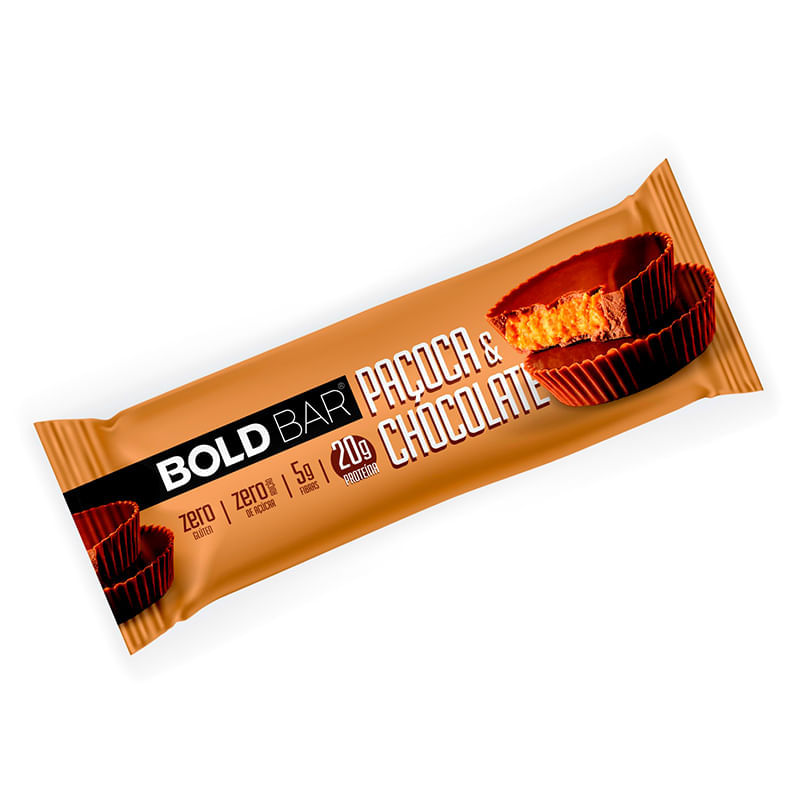 <p>A <strong>Bold Bar Paçoca e chocolate</strong>, da <strong>Bold Snacks</strong>, é uma barra de proteína deliciosa e nutritiva. Cada barrinha fornece <strong>20 g de proteínas</strong> proveniente do whey protein e do colágeno hidrolisado, além de 5 g de fibras e <strong>zero adição de açúcares</strong>. Ideal para satisfazer a vontade de comer um doce com praticidade.</p> Sobre os Ingredientes: <p>Confira mais informações sobre alguns ingredientes do produto.</p> <p>· <strong>Blend proteico:</strong> composto por proteínas do leite e do soro do leite, fornecem aminoácidos essenciais, ou seja, aqueles que o nosso corpo não produz e precisamos obter por meio da dieta.</p> <p>· <strong>Colágeno hidrolisado:</strong> os aminoácidos presentes no colágeno estão presentes em diversos tecidos, tais como o da pele, ossos, cartilagens e ligamentos.</p> <p>· <strong>Frutooligossacarídeos (FOS):</strong> considerada uma fibra prebiótica.</p> Recomendação de consumo: <p>Consuma até 2 unidades ao dia ou conforme orientação profissional.</p> <p><strong>Dica:</strong> experimente deixar a barrinha por alguns segundos no micro-ondas e aproveite a sua sobremesa.</p> Por que escolher este produto? <p>· 20 g de proteínas por unidade</p> <p>· Sem adição de açúcar</p> <p>· Sem glúten</p> <p>· Com whey protein</p> <p>· Sem proteína de soja</p> <p>· 5g de fibras alimentares</p> <p>· Zero gordura trans</p> Sobre a marca: <p>A <strong>Bold Snacks</strong> é uma empresa que preza pelo sabor e qualidade nutricional dos seus produtos. Desenvolve snacks gostosos, mas sem deixar de lado os aspectos funcionais, para que não seja apenas pelo prazer de comer, mas pelo SENTIDO que comer um snack vai ter em sua alimentação diária.</p>