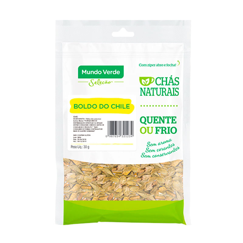 <p>O <strong>Boldo do Chile</strong> da <strong>Mundo Verde Seleção</strong>, é feito com folhas de pneumus boldus Moina desidratada para o preparo de chá em infusão. É 100% natural, sem adição de açúcar ou aromas artificiais, pode ser consumido quente ou frio.</p> Sugestão de consumo: <p>Despeje uma xícara de água fervente sobre uma colher de sobremesa de erva e em seguida abafe por 10 minutos.</p> Motivos para escolher o produto: <ul> <li>Sem adição de aroma e corante artificial</li> <li>Sem aditivos alimentares</li> <li>100% natural</li> <li>Não contém Glúten</li> <li>Sem conservantes artificiais</li> <li>Sem adição de açúcar</li> </ul> Sobre a marca: <p>A <strong>Mundo Verde Seleção</strong> é uma linha de produtos para quem quer ter uma vida mais saudável e gostosa. A marca quer ajudar a colocar essas escolhas em prática. A paixão e conhecimento pelos alimentos, nutrientes, aromas e sabores permitem a seleção das melhores opções saudáveis para qualquer ocasião. Conheça a linha completa Mundo Verde Seleção, com inúmeros produtos saudáveis e gostosos para facilitar seu dia a dia.</p>