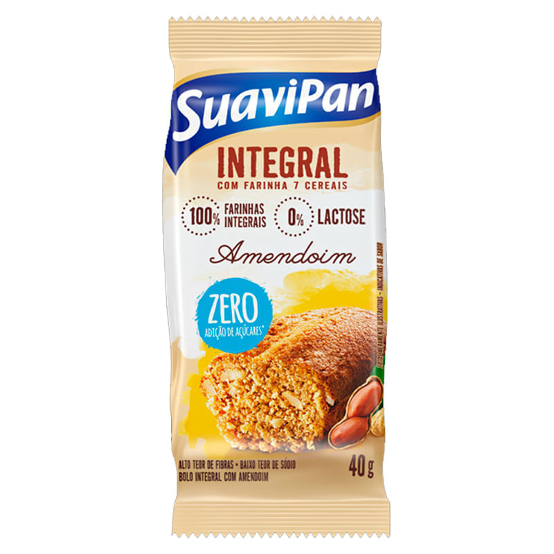 <p>O <strong>Bolinho Integral Zero açúcar de Amendoim, </strong>da<strong> Suavipan, </strong>é um produto muito saboroso formulado com ingredientes cuidadosamente selecionados, fonte de fibras e nutrientes elaborado com farinha 100% integral. Ideal para uma dieta saudável e equilibrada.</p> <strong>Recomendação de consumo:</strong> <p>Pode ser consumido a qualquer hora do dia, como nos lanches intermediários ou café da manhã.</p> <strong>Alérgicos:</strong> <p>Contém trigo, centeio, aveia, ovo, soja e derivados e amendoim. Pode conter cevada, triticale, castanha do pará, avelãs e nozes. Contém glúten.</p> <strong>Por que escolher este produto?</strong> <ul> <li>Sem adição de açúcar</li> <li>Feito com 100% de farinhas integrais</li> <li>Isento de gordura trans</li> <li>Sem lactose</li> <li>Alto teor de fibras</li> <li>Baixo teor de sódio</li> <li>Apenas 118 kcal por porção</li> </ul> <strong>Sobre a marca:</strong> <p></p> <p>A Suavipan foi fundada na cidade de São Paulo em 1998 e, desde então, se empenha em desenvolver e fabricar os melhores e mais saudáveis alimentos em sua categoria. Para isso, trabalha com as mais seletas matérias-primas. Possuem quatro linhas distintas de produtos, comercializadas em todo o Brasil, a linha zero adição de açúcares, a de produtos orgânicos, de produtos Integrais e a linha LevSlim.</p>