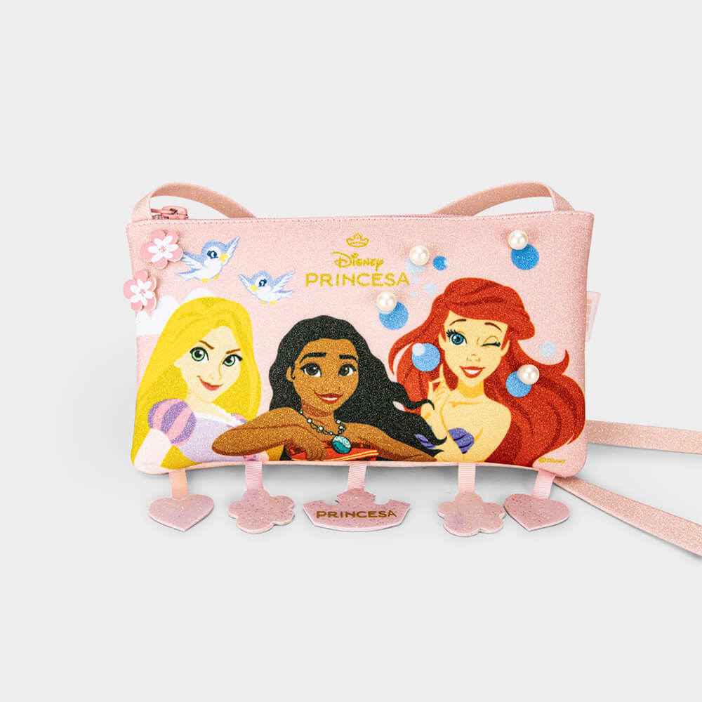 A mágica do universo Disney se encontra com o conforto e a qualidade dos acessórios infantis da Bibi. <br> Apresentamos a bolsa infantil feminina das **Princesas**, o acessório perfeito para as meninas que amam o universo **Disney!** Com aplicação de pérolas e muito glitter, possui a representação das personagens **Rapunzel, Moana e Ariel.** <br> Confeccionada com materiais de alta qualidade, a bolsa oferece conforto e durabilidade, garantindo que as meninas possam brincar e se divertir. Perfeita para complementar qualquer look.