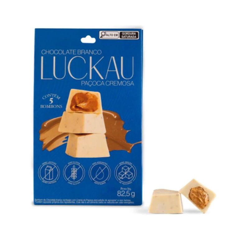 <p dir="ltr">O <strong>bombom de chocolate branco Luckau </strong>está com uma nova e irresistível versão,<strong> recheado com um cremosíssimo creme de paçoca com pedaços de amendoim</strong>. Você irá se deliciar com essa perfeita combinação. Nesta embalagem contém 5 bombons. </p> <h2 dir="ltr">Sugestão de consumo:</h2> <p dir="ltr">Pode ser consumido como sobremesa e em lanches intermediários com moderação. </p> <h2 dir="ltr">Motivos para escolher o produto:</h2> <ul> <li dir="ltr"> <p dir="ltr">Recheio de paçoca cremosa;</p> </li> <li dir="ltr"> <p dir="ltr">Sem adoçantes artificiais;</p> </li> <li dir="ltr"> <p dir="ltr">Sem adição de açúcar;</p> </li> <li dir="ltr"> <p dir="ltr">Sem glúten e lactose. </p> </li> </ul> <h2 dir="ltr">A Marca</h2> <p><strong>Luckau</strong> é uma empresa especializada na produção de chocolates finos e funcionais. Tem Linha Belga e a Linha Vegana, e todos os produtos feitos pensando em proporcionar uma experiência saudável e única. Apaixonados por chocolates e que querem manter uma rotina saudável, a Luckau foi desenvolvida exatamente é para você! <strong>Com produtos ZERO açúcar! A missão é trazer qualidade e sabor para a vida.</strong></p>