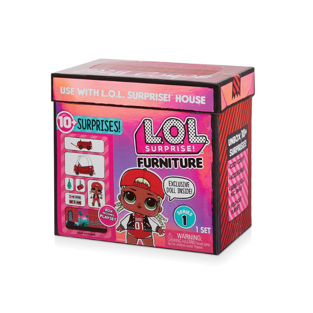 Com a LOL Furniture é possível personalizar a casa da L.O.L. com novos móveis e acessórios ou criar novos ambientes super divertidos! São mais de 10 surpresas sendo 1 boneca exclusiva e a embalagem transforma-se em um novo ambiente. São 4 ambientes diferentes e cada um vem com uma boneca LOL Surprise. L.O.L. Surprise! Furniture Cozy Coupe with M.C. Swag vem com uma linda LOL MC Swag que acompanha um adorável carro Cozy Coupe, adesivos e acessórios para personalizá-lo.
