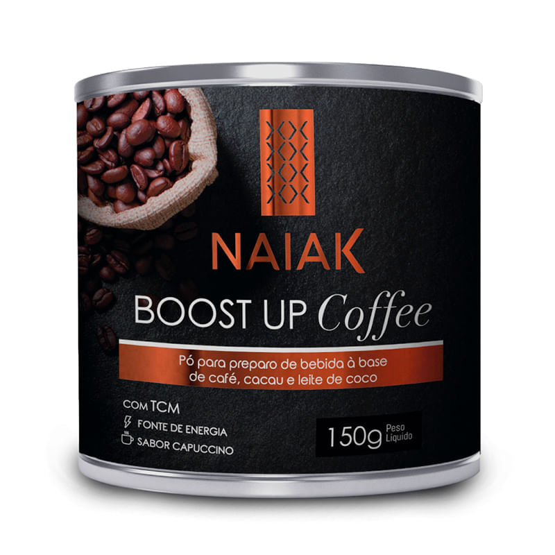 Informações técnicas do produto:<br> O Boost Up Coffee, da Naiak, é formulado com café, cacau, leite de coco e especiarias para deixar ainda mais saboroso e nutritivo. Inspirado no bulletproof, é enriquecido com TCM e não contém lactose, adição de açúcar ou conservantes. Ótima bebida vegana para consumo no seu dia a dia.<br> <br> Recomendação de consumo:<br> Dilua uma dose de 5g em 50ml de água e misture até ficar homogêneo. Pode ser consumido quente ou gelado.<br> <br> Por que escolher esse produto?<br> Enriquecida com TCM<br> Sem a adição de açúcar<br> Sem adição de conservantes<br> Produto 100% Vegano<br> Adoçado com stévia<br> Com canela e noz-moscada<br> Sobre a marca:<br> A Naiak é uma empresa farmacêutica, de origem brasileira, que oferece uma linha completa de produtos nutracêuticos e alimentos funcionais voltados para a beleza e o bem-estar. Buscam cuidar da saúde de dentro para fora. Extraem seus ativos da natureza que em conjunto com a sua alta tecnologia oferecem produtos os quais contribuem para a vitalidade, qualidade de vida e autoestima.