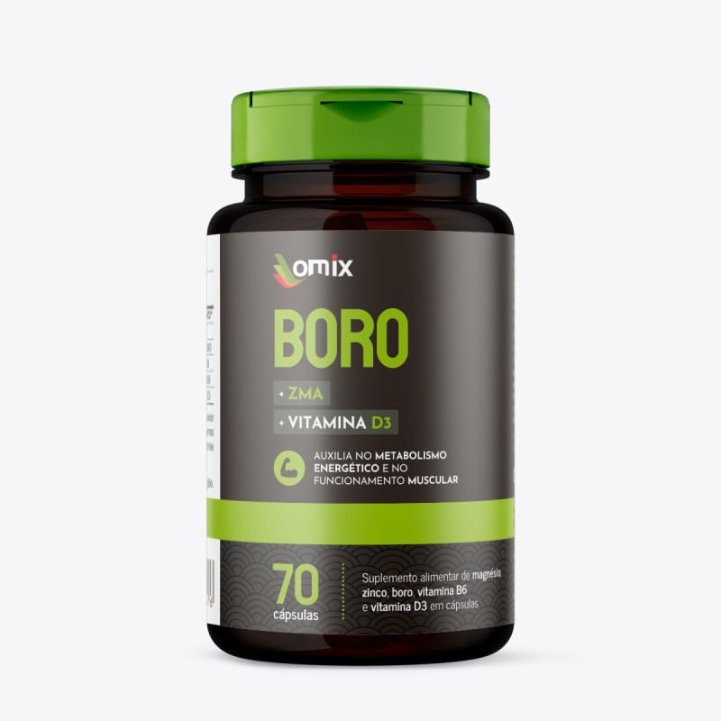 <p>O Boro + ZMA + D3 da Omix é um suplemento alimentar em cápsulas desenvolvido com nutrientes que atuam no metabolismo enérgico, ele une o zinco, magnésio e a vitamina B6 (ZMA) ao boro e a vitamina D. </p> <h2><strong>Sugestão de consumo:</strong></h2> <p>Consumir de 1 a 2 cápsulas antes de dormir, ou conforme orientação do médico ou nutricionista. </p> <h2><strong>Motivos para escolher o produto:</strong></h2> <ul> <li> <p>Sem glúten e sem lactose;</p> </li> <li> <p>8,9mg de boro por dose;</p> </li> <li> <p>Rende 35 doses;</p> </li> </ul> <h2><strong>A Marca:</strong></h2> <p>A marca Omix nasceu no estado do Rio de Janeiro, atua produzindo e distribuindo suplementos alimentares há mais de 25 anos, com a missão em levar bem-estar, saúde e melhor performance aos seus clientes. Seus produtos são elaborados com matérias-primas de qualidade, que passam por rigoroso controle de qualidade, desde a fabricação até a chegada ao consumidor final.</p> <p> </p>