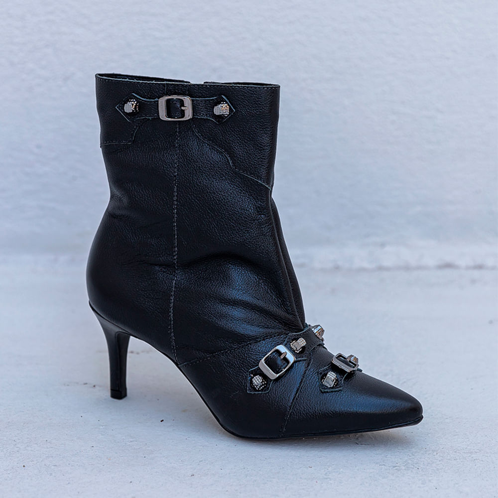 A Bota Bico Fino Fivelas Cano Curto é um tipo de calçado feminino que possui um bico fino na parte da frente e fivelas decorativas ao longo do cano e na sua extremidade; Confeccionadano couro; A Bota Bico fino Fivelas Cano Curto confere elegância e sofisticação ao modelo, enquanto as fivelas adicionam um toque de modernidade e estilo; O cano curto permite que a bota seja usada tanto em ocasiões formais como informais, combinando bem com saias, vestidos, calças jeans, entre outras peças de roupa; Ao invés de optar pelas cores tradicionais como preto, marrom e caramelo, as pessoas estão escolhendo botas em tons de vermelho, azul, verde e amarelo; Esses tons vibrantes trazem um toque de diversão e originalidade ao look, tornando-o mais chamativo e único; <br><br><br>.<br><br><br>Produto: Bota Bico Fino Fivelas Cano Curto Preto <br>Categoria: Botas<br>Tipo de Salto: Fino <br>Altura do Salto: 4cm<br>Tipo de Bico: Fino<br>Material Externo: Couro<br>Solado: Pvc<br>Forro: CACHARREL<br>Cano: Pequeno<br>Forma: 0,504g<br>Cor: Preto<br>Gênero: Feminino.<br><br>