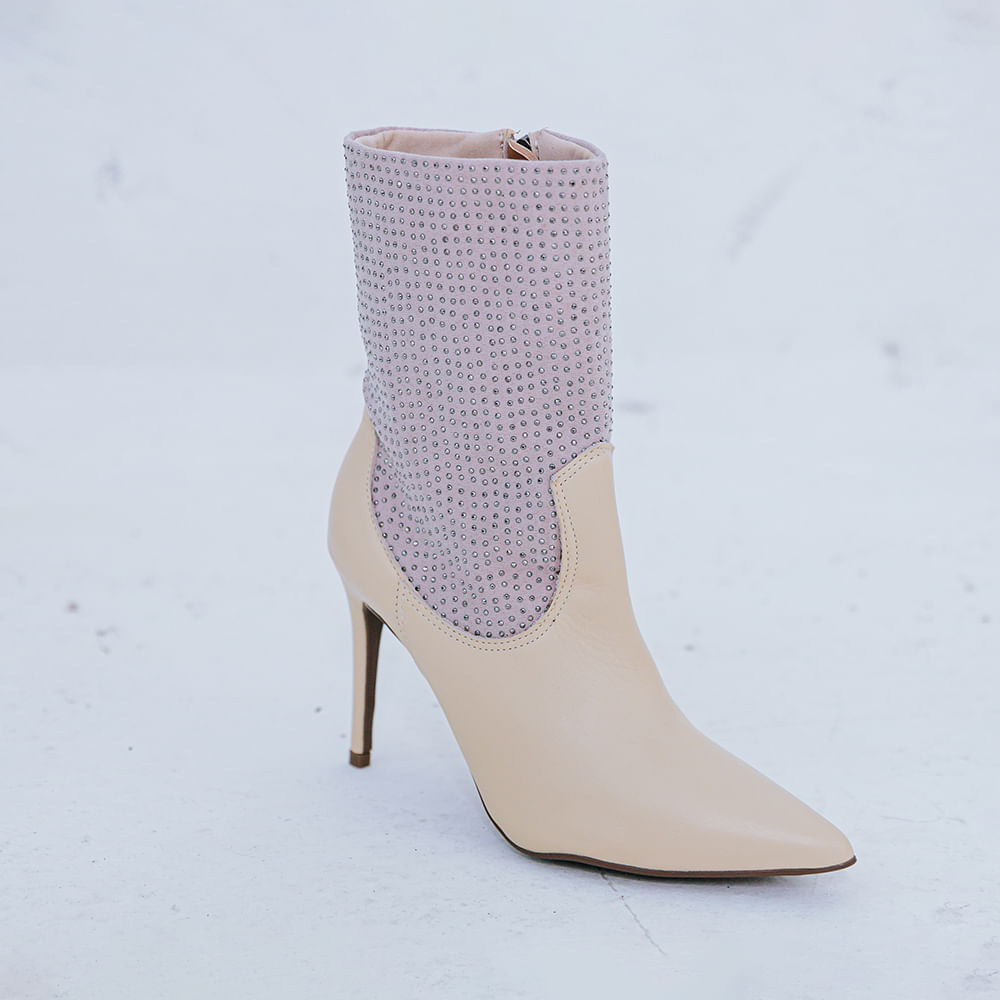 Bota feminina confeccionada em couro e forro sintético; Modelo clássico de salto agulha com 9,5 cm de altura; Possui bico fino, cano médio, solado em PVC que traz maior durabilidade e forro confortável; Acabamento com strass em todo o cano; A bota de salto agulha com strass é ideal para quem adora um visual elaborado.; Combine com um vestido com brilho e arremate com as nossas bolsas metalizadas, para um visual noturno; A bota com strass é perfeita para você garantir o night look digno de uma it girl; Invista nesse modelo para completar sua produção de moda!<br><br>.<br><br>Produto: Bota Brilho Salto Fino Bico Fino Nata <br>Categoria: Botas<br>Tipo de Salto: Fino<br>Altura do Salto: 9,5 cm<br>Tipo de Bico: Fino<br>Material Externo: Couro<br>Solado: Pvc<br>Cano: Curto<br>Forma: Normal, utilize a numeração que costuma utilizar<br>Peso: 1,560 g<br>Cor: Nata<br>Gênero: Feminino.