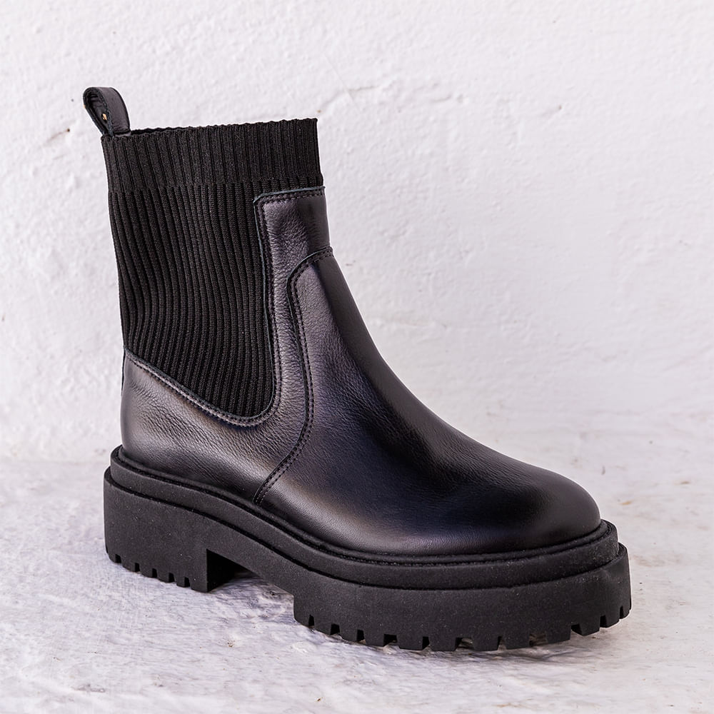 Bota coturno feminina confeccionada em couro e forro sintético; Modelo conta com bico redondo, cano médio com recorte em elástico na parte superior, cabedal de couro com detalhe pespontado e puxador na parte de trás; Possui entressola e solado levemente tratorado com salto baixo; Palmilha interna super confortável para todo o dia; A bota coturno marrom é ideal para os dias mais frios, sendo perfeitas para serem usadas com calças jeans e blusas de manga longa; Para arrematar, não esqueça a bolsa de couro da mesma cor; Os coturnos estão de volta e você precisa garantir seu calçado trendy para os looks de inverno; Aposte!<br><br><br>.<br><br><br>Produto : Bota Coturno Tratorada Cano Médio Preto <br>Categoria: Botas<br>Tipo de Salto: Sem Salto <br>Altura do Salto: Sem Salto <br>Tipo de Bico: Redondo<br>Material Externo: Couro<br>Forro: Sintético <br>Solado : PVC<br>Cano : Curto<br>Forma: Normal compre sua numeração que costuma usar<br>Peso: 1,840<br>Cor: Preto <br>Gênero: Feminino.