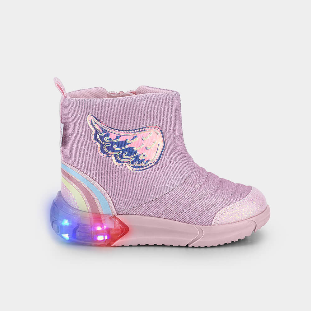 A bota infantil de luz feminina da linha Bibi Space é uma botinha encantadora, perfeita para as maiores aventuras do dia a dia das crianças. Confeccionada em tecido brilhoso e adornada com detalhes encantadores da asa do unicórnio e arco-íris no painel traseiro, esta botinha proporciona muita diversão e ludicidade para os pequenos exploradores. Seu novo solado é equipado com luzes coloridas que piscam em sincronia com a caminhada, adicionando uma experiência sensorial única e um design supermoderno ao calçado. Além disso, a bota conta com a palmilha Fisioflex, que oferece um conforto macio, assemelhando-se à sensação de andar descalço, proporcionando o suporte necessário para os pezinhos em crescimento. A bota infantil de led feminina Bibi Space não é apenas um calçado, é um convite para as crianças explorarem o mundo com estilo e alegria. Adquira agora essa botinha encantadora e ofereça às meninas a combinação perfeita entre conforto, diversão e estilo em cada passo!