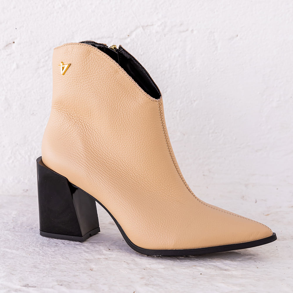 Bota Western confeccionada em couro com forro sintético; A bota com modelagem Western possui cano curto com formato arredondado, bico fini e salto bloco grosso e médio de 7,5 cm de altura; O modelo possui solado laqueado e sintético com ótima durabilidade, palmilha macia e detalhe com o logo da marca lateral; A bota Western feminina é moderna e sofisticada ao mesmo tempo, sendo possível criar inúmeros looks com ela; Aposte na sua bota com calça jeans skinny e camisa, para um visual clássico; Arremate com as nossas bolsas baguetes coloridas; O modelo Western é a grande tendência do momento e as fashionistas estão amando criar um mood folk para suas produções com ela; Invista!<br><br>.<br><br>Produto: Bota Western Cano Curto Salto Bloco Nata <br>Categoria: Botas<br>Tipo de Salto: Fino<br>Altura do Salto: 7,5 cm<br>Tipo de Bico: Fino<br>Material Externo: Couro<br>Solado: Pvc<br>Forro: Sintético <br>Cano: Médio<br>Forma: Normal, compre a numeração que costuma utilizar <br>Peso: 1,880g<br>Cor: Nata<br>Gênero: Feminino.
