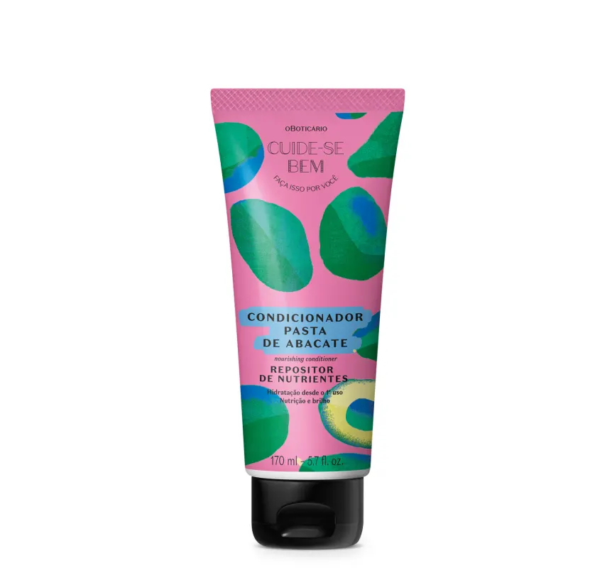 Condicionador Pasta de Abacate Cuide-se Bem Feira 170ml<br /> O Condicionador Pasta de Abacate Cuide-se Bem Feira devolve a maciez dos fios e é indicado para todos os tipos de cabelos.<br /> <br /> <br /> <br /> Este condicionador repositor de nutrientes é formulado com pasta de abacate complementa o tratamento durante sua rotina capilar trazendo liberdade para você compor com os outros produtos de Cuide-se Bem Feira.<br /> <br /> <br /> <br /> O uso do condicionador é uma etapa importante para complementar o tratamento durante sua rotina de cuidados capilares, o condicionador tem uma fórmula nutritiva que deixa os cabelos mais macios após a lavagem. Confira mais sobre os benefícios que o condicionador pasta de abacate traz para o seu cabelo:<br /> <br /> · Hidratação desde o 1º uso;<br /> <br /> · Devolve maciez ao cabelo;<br /> <br /> · Cabelos mais brilhantes e livres do frizz.<br /> <br /> <br /> <br /> SOBRE A LINHA CUIDE-SE BEM FEIRA<br /> <br /> A linha Cuide-se Bem Feira traz ingredientes naturais e fórmulas específicas desenvolvidas especialmente para você cuidar bem dos seus cabelos.<br /> <br /> <br /> <br /> Nenhum produto do Boticário é testado em animais, ou seja, este item possui selo Cruelty Free. Condicionador vegano.